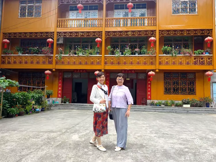 在别具风格的土家楼前,姐妹俩也兴致勃勃的留个影。