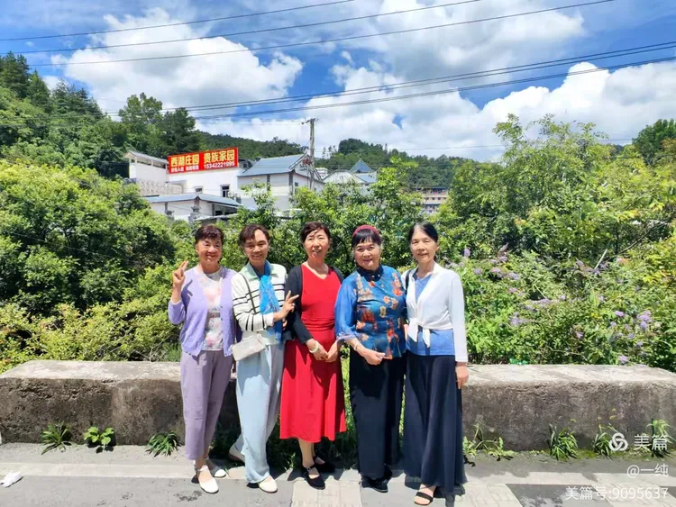 蓝天如洗,峰峦生翠,凉乡气候宜人,处处风景如画。姐妹们并肩携手,在美好的风光中留下美好的纪念。