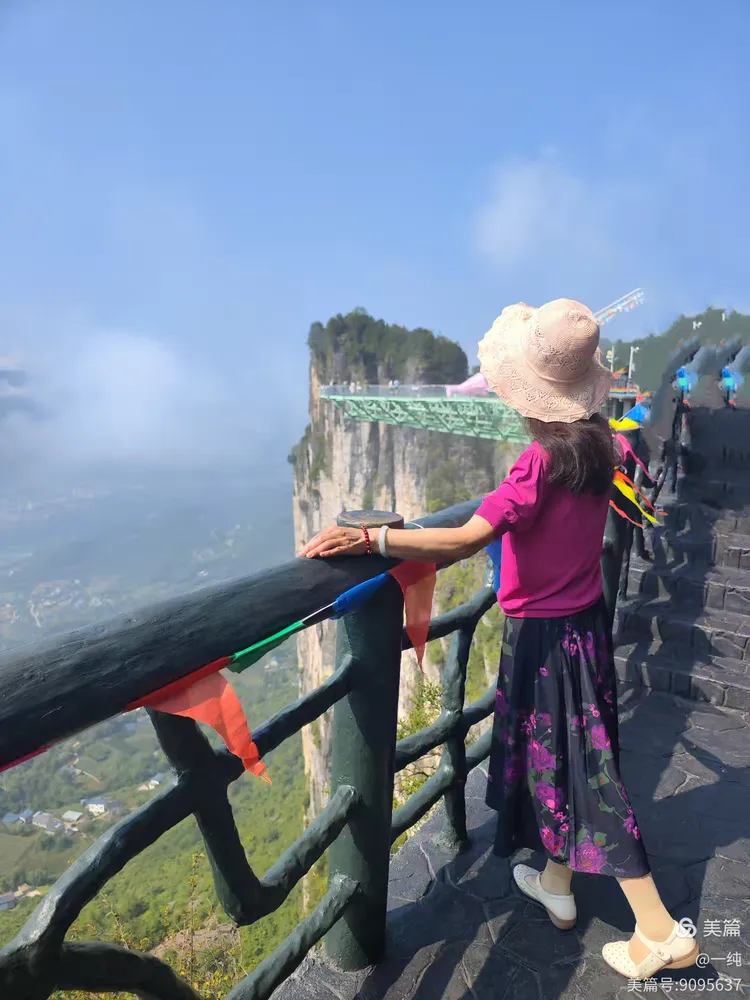 看这位飞人大哥精神不减当年,奇峻的美景吸引他站上栏杆拍摄耸入蓝天的悬崖峭壁。