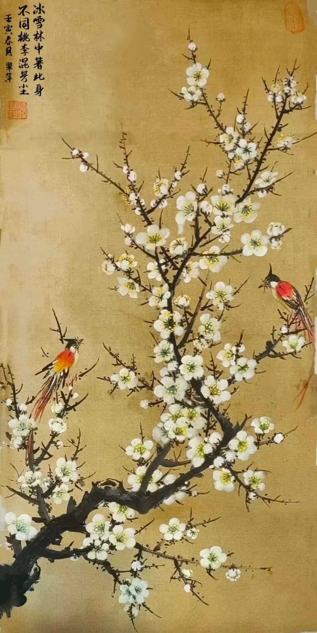 在当代中国画坛,谭翠萍以一支灵秀之笔构筑起一座跨越传统与现代的艺术桥梁。她的小写意兼工笔花鸟作品,既流淌着宋元院体的细腻血脉,又跳动着当代生活的鲜活脉搏,形成了一种“笔精墨妙富有神韵,清丽典雅”的独特风格。