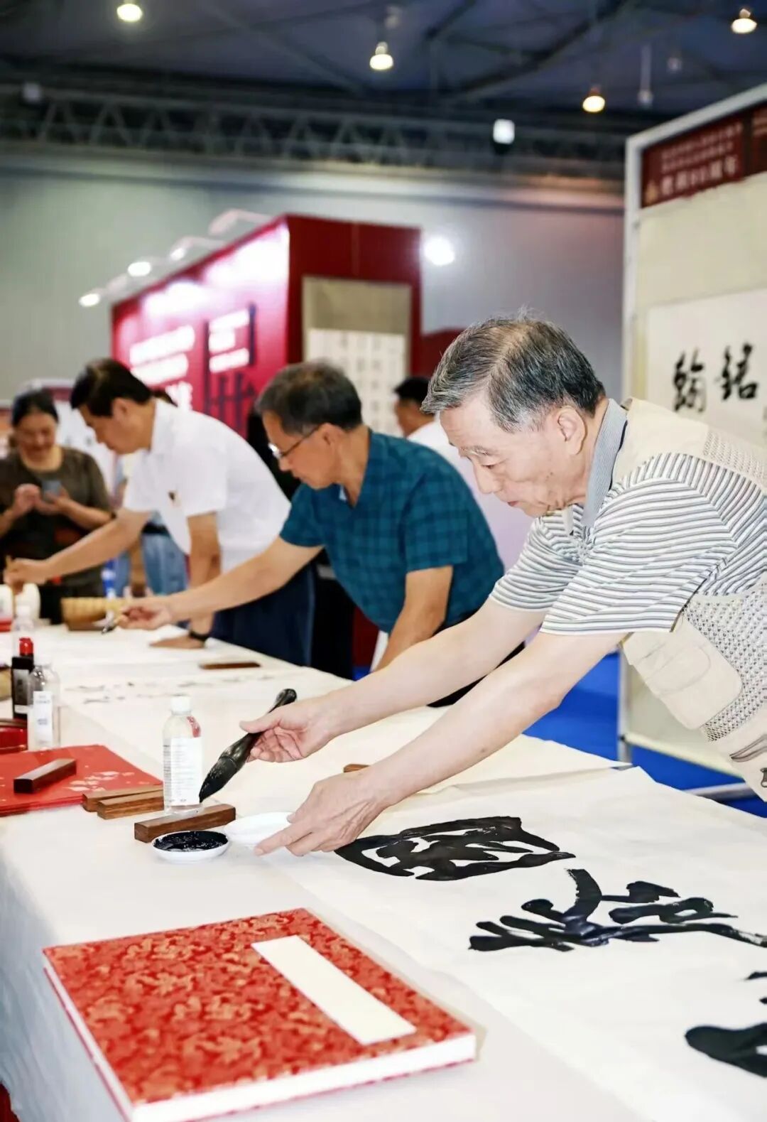 开幕式由原总政歌舞团政委刘景智主持。巡展执行主席、中国民族书画研究院院长张生礼在致辞中表示,要以笔墨为桥,让历史焕发新生,让精神照亮未来。四川省退役军人就业创业服务促进会副会长蒋维勇代表老将军和老军人发言,回顾了川军“无川不成军”的抗战壮举,强调了四川人民为抗战胜利作出的卓越贡献。全国政协委员、成都市政协副主席徐玖平从九三学社视角,阐释了抗战精神的当代价值。汉诺集团代表则表示,民营企业当以实业报国传承红色基因。此外,组委会执行常务副主席苑建国等书画名家代表,以及各界人士共同见证了这一盛事。活动现场,老将军们即席挥毫,与观众共绘“精神图腾”,将气氛推向高潮。