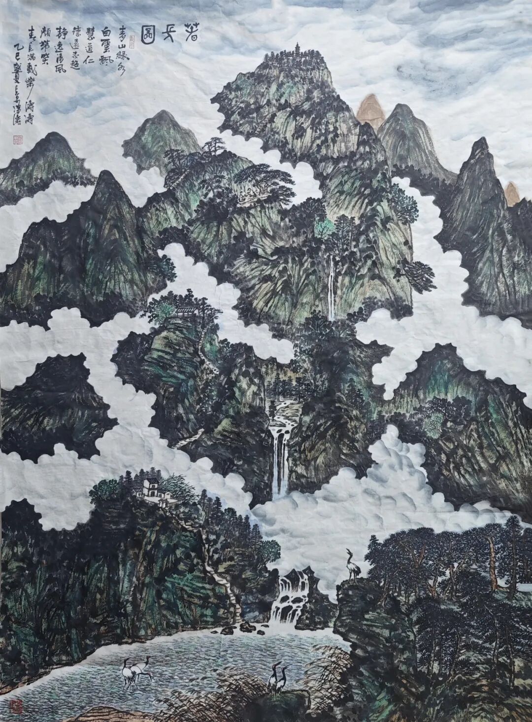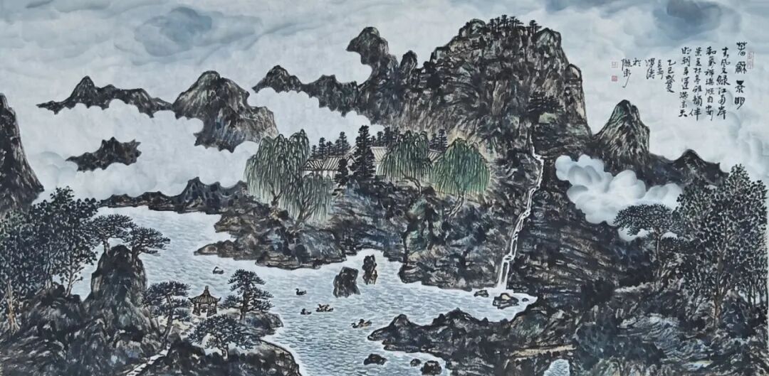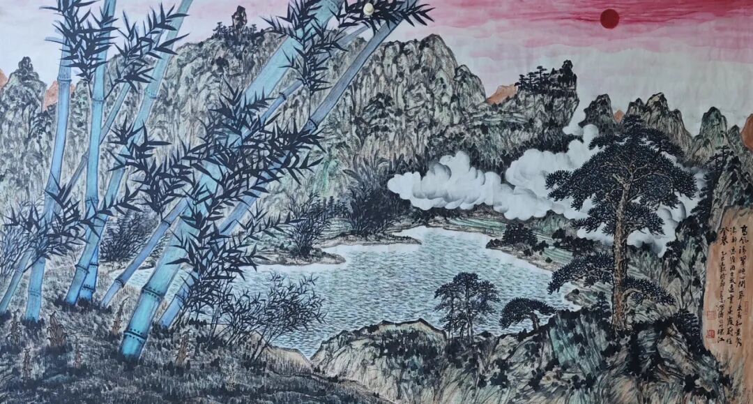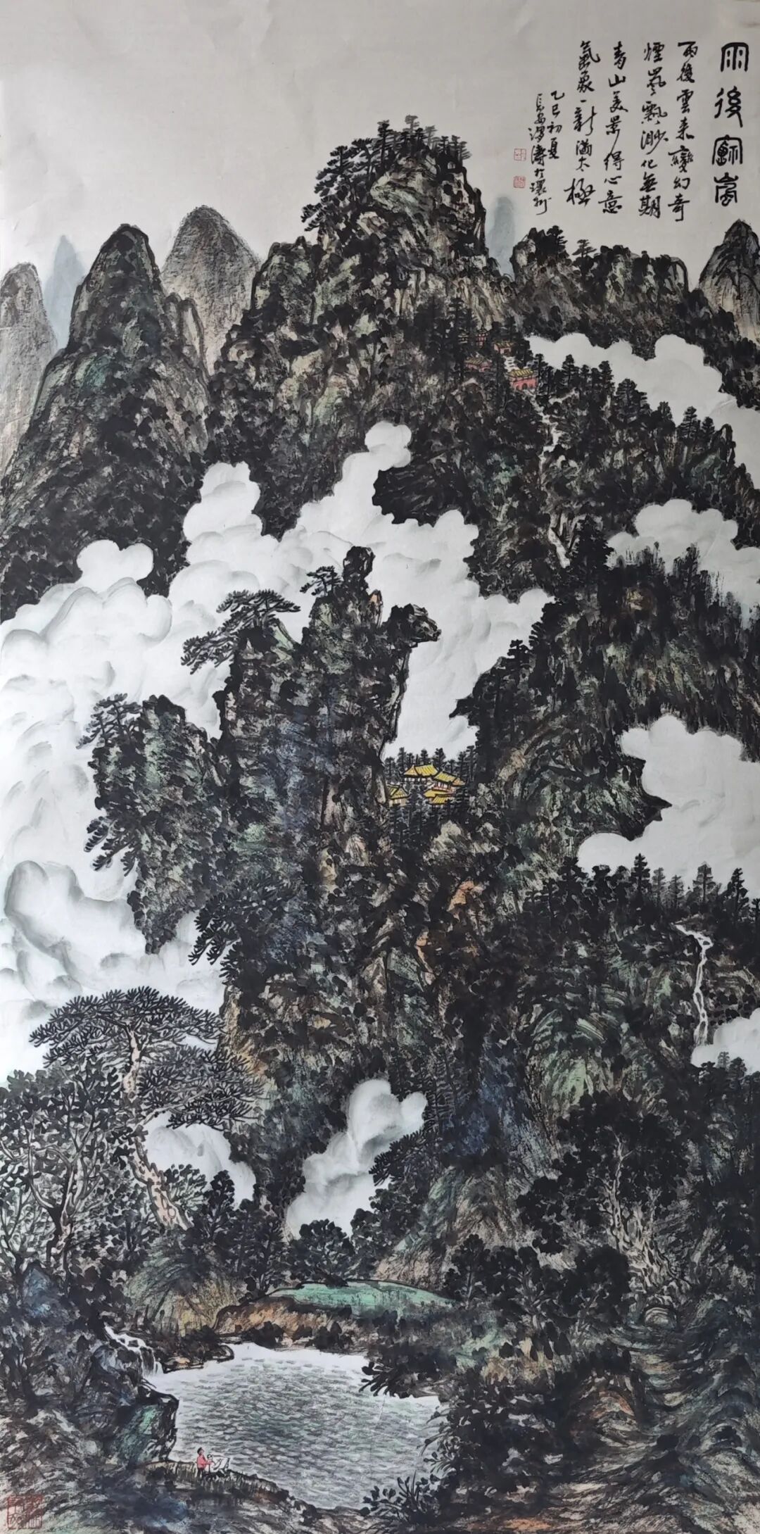 水远泉声鸣凤眼,云烟缭绕滿山川。