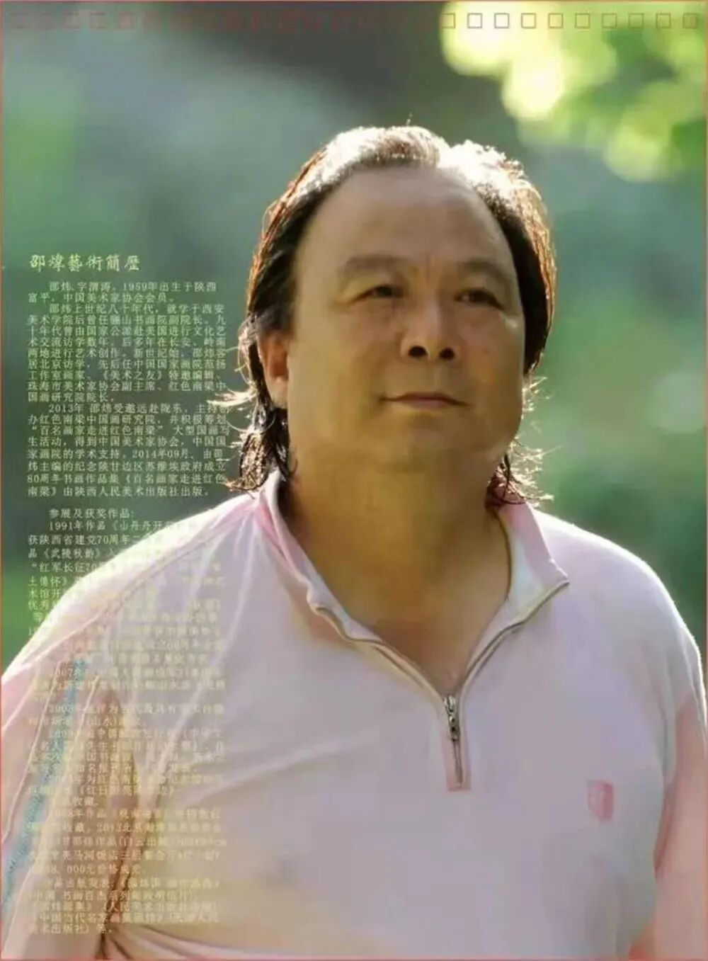 邵炜,字渭涛,1959年出生于陕西富平,中国美术家协会会员,红色南梁中国画院研究院院长。邵炜上世纪八十年代,就学于西安美术学院后曾任骊山书画院院长。九十年代曾由国家公派赴美国进行文化艺术交流数年。后多年在长安、岭南两地进行艺术创作。新世纪始,邵炜客居北京访学,先后任中国国家画院范扬工作室画家、《美术之友》特邀编辑、珠海市美术家协会副主席。