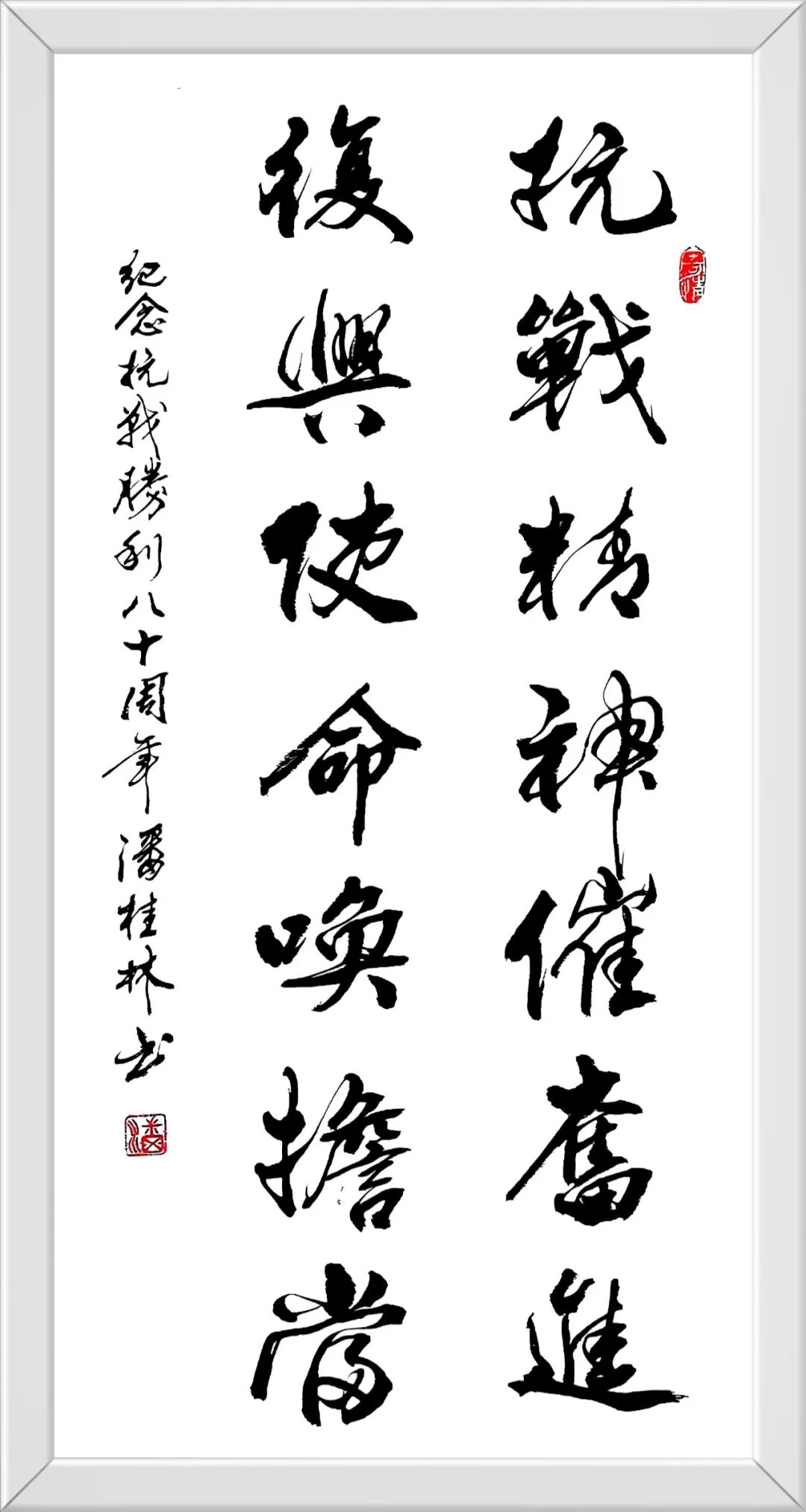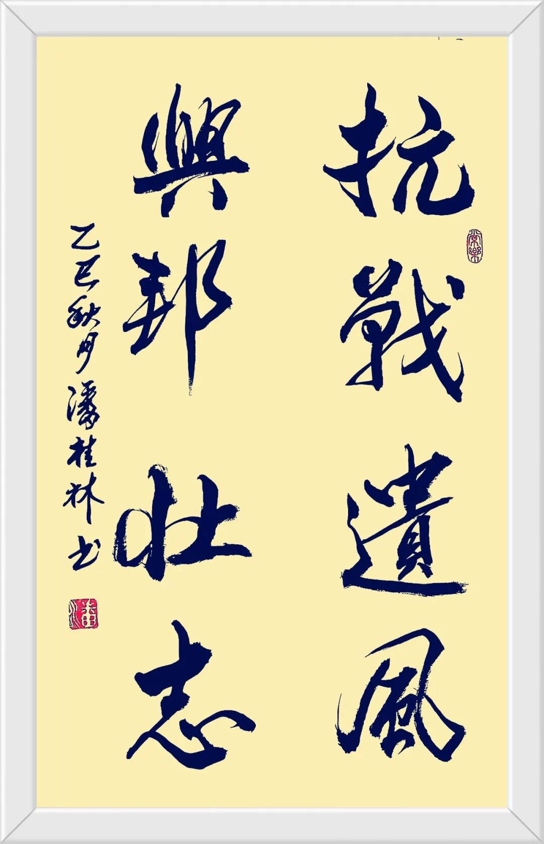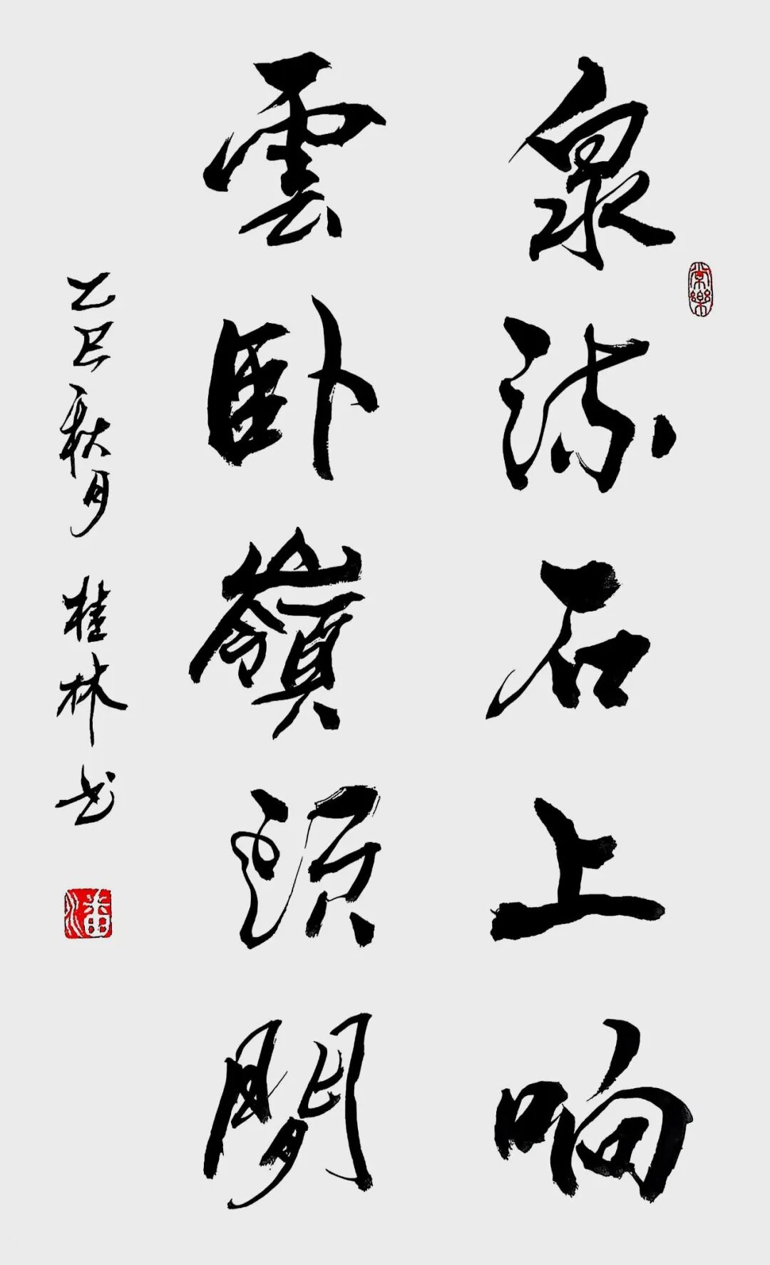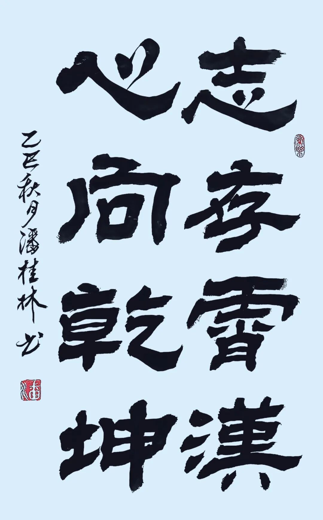 墨迹间流淌着千年传统的深厚底蕴,又闪烁着创新求变的思想火花。每一笔都凝聚着对书法艺术的深刻领悟,每一画都蕴含着对美学境界的不懈追求。在漫长的习字岁月里,他如饥似渴地研磨思索,像蜜蜂采蜜般博采众家精华,终将百家之长熔铸一炉,淬炼出独树一帜的艺术风格。这种风格既扎根于传统的沃土,又绽放出时代的新芽,宛如在千年书法长河中开辟出一条属于自己的清溪,既保持着传统的清澈,又涌动着创新的活力。