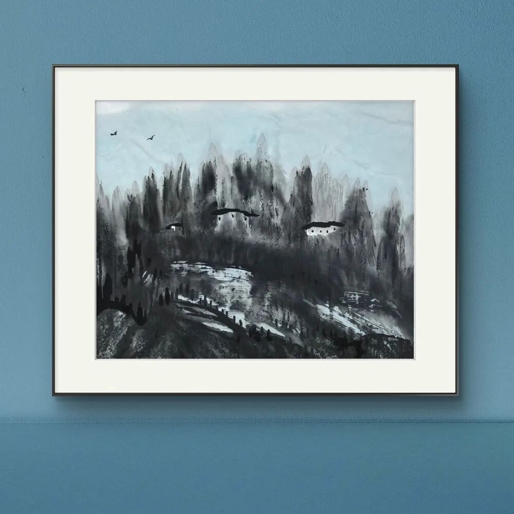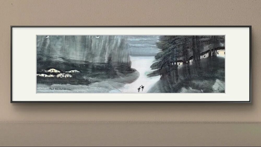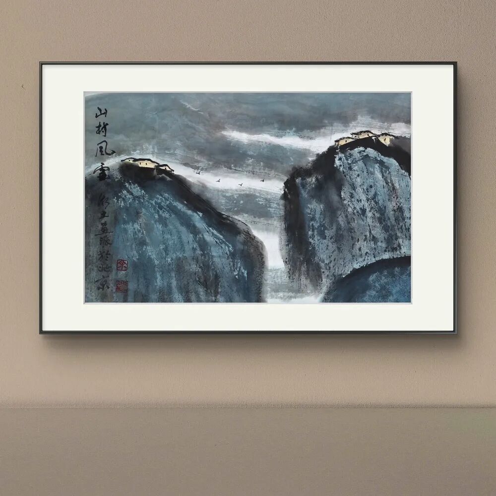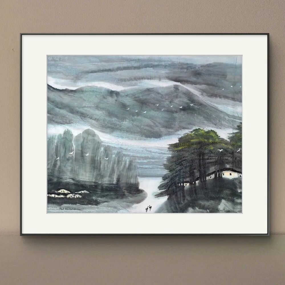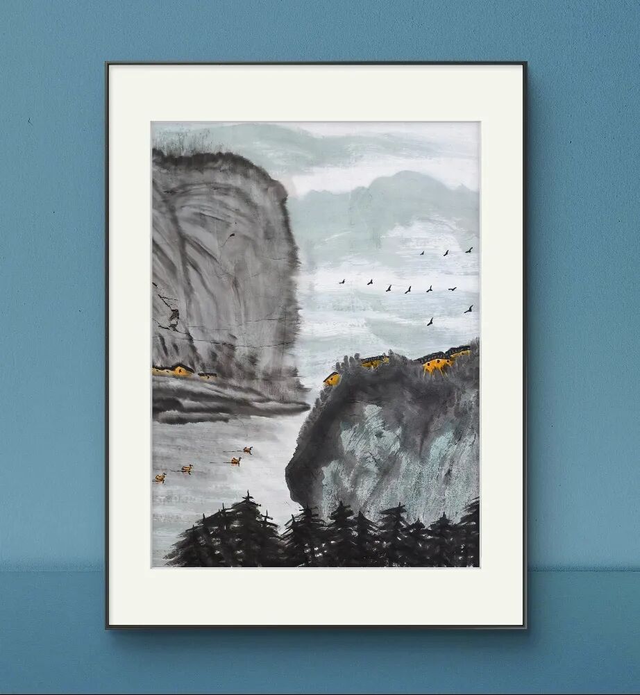 余和平先生的山水画以浏阳河、大围山为创作母题,在《春润大围山》《浏阳河系列》等代表作中,他以酣畅淋漓的泼墨技法,勾勒出湘东地区的灵秀与壮美。他的笔墨既有传统中国画的写意精神,又融入了现代审美意识,大块面的墨色晕染与精细的局部刻画相得益彰,使画面既浑厚磅礴,又充满生活气息。农舍、梯田、溪流等元素在他的笔下不再是简单的风景点缀,而是承载着深厚乡土情感的符号,传递出"绿水青山就是金山银山"的生态理念。