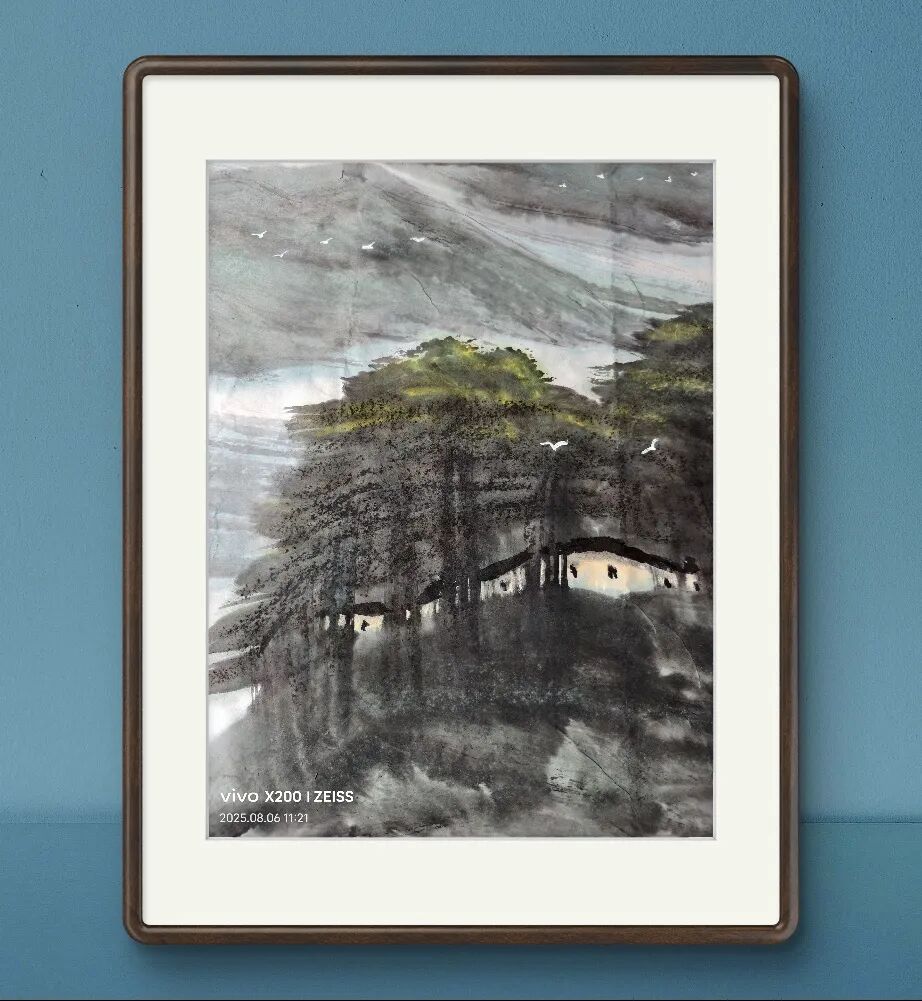 作为一位军旅画家,余和平的作品在柔美的乡土意境中暗含刚健之气。他的构图大气磅礴,用笔果断有力,墨色层次丰富,仿佛将军人的坚毅品格融入山水之中。这种刚柔并济的风格,使他的"湘土画派"不仅是对故乡的深情讴歌,更是一种精神力量的表达。