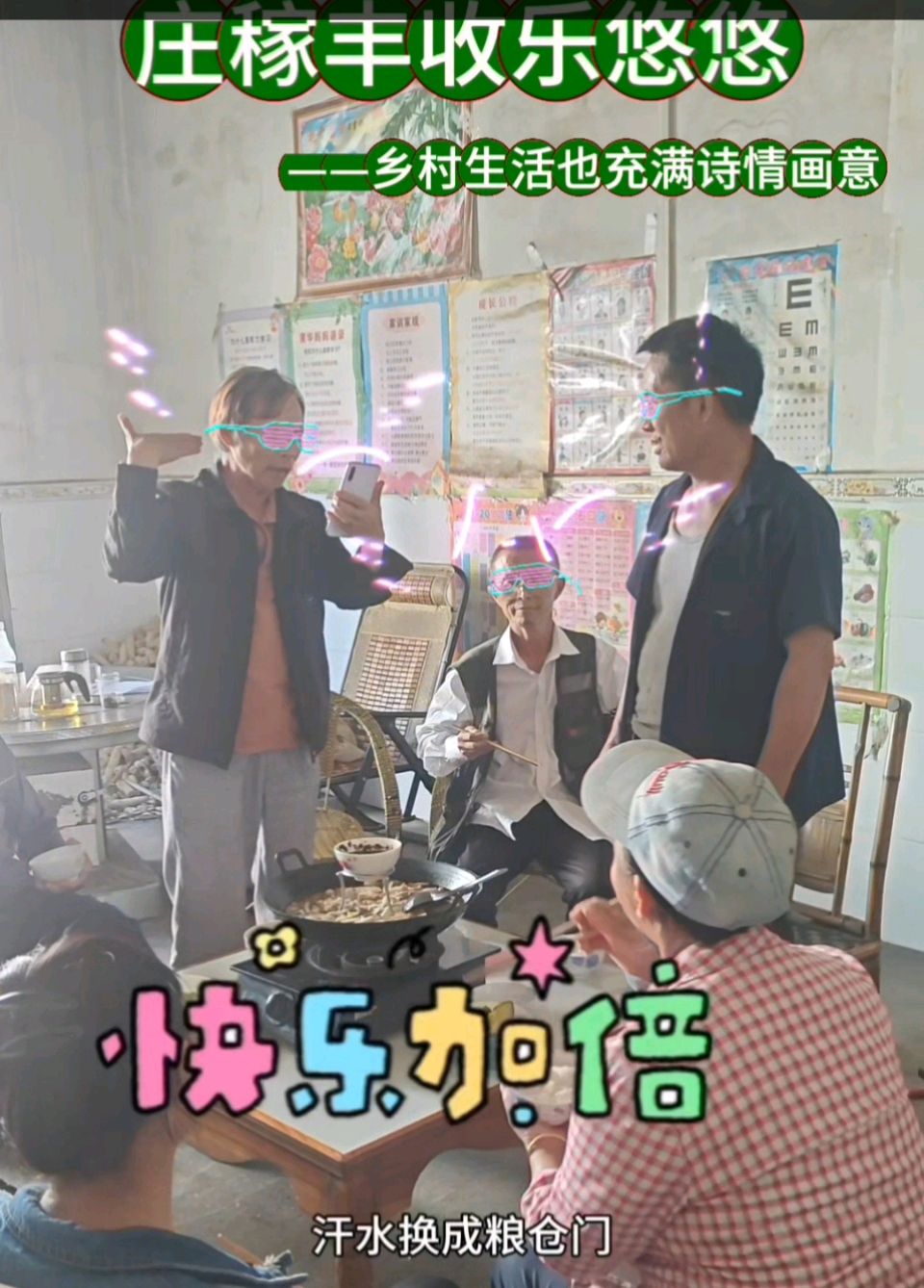 大家听了以后,各有各的想法在心里头。有的认为村里的工作该放手就放手;有的认为只要上级领导还需要就不要走;有的则以为该回家了去把天伦之乐好好享受享受,何必要当一辈子的“老黄牛”。随后,刘主任叫大家进餐饮酒,庆祝一下庄稼丰收。杨老头为刘主任喜获丰收祝福,刘主任多么辛苦!现吟诗一首:田畴广袤绘金图,庄稼丰登意兴殊,麦浪摇风千顷舞,稻禾映日万珠铺,蔬盈菜圃香飘巷,果满枝头翠绕庐,且喜年成多瑞兆,同斟美酒醉才休。杨老头接下来又继续再吟诗第二首:金风拂野稻粱黄,垄上垂珠喜气扬,麦浪千层翻瑞景,棉云万顷映韶光,犁牛卧处村烟暖,社鼓喧时岁事昌,且喜仓盈民富足,举杯同贺九州康。大家听了以后,急忙鼓掌开口:好!好!好!快饮酒!庆祝一下丰收。