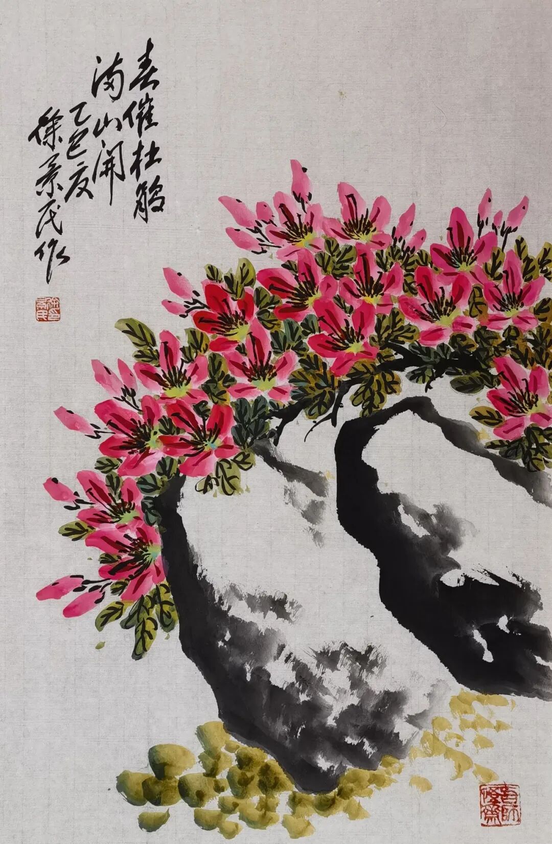 徐景民,江苏常熟市人,1954年2月生。中国文化艺术发展促进会艺术委员、常熟市美术家协会会员、常熟市书法家协会会员。师从吴(昌硕)门第四代杰出传人、上海市文史馆馆员、著名书画家张国恩先生。擅长以本地虞山矿物质赭石色为主色创作具有吴(昌硕)门风格的色泽厚重为特点的写意石榴图,用厚重的墨色临写吴昌硕石鼓字,用篆笔入草书写于右仁草书。