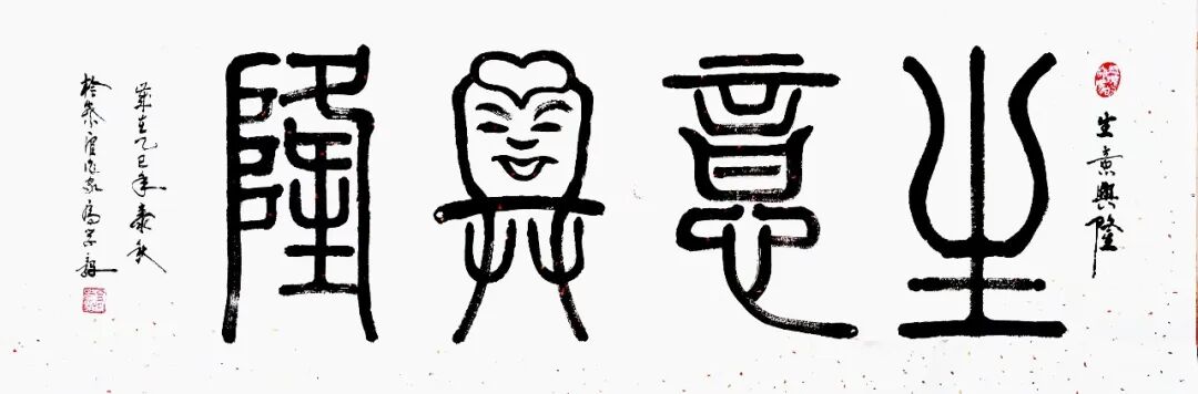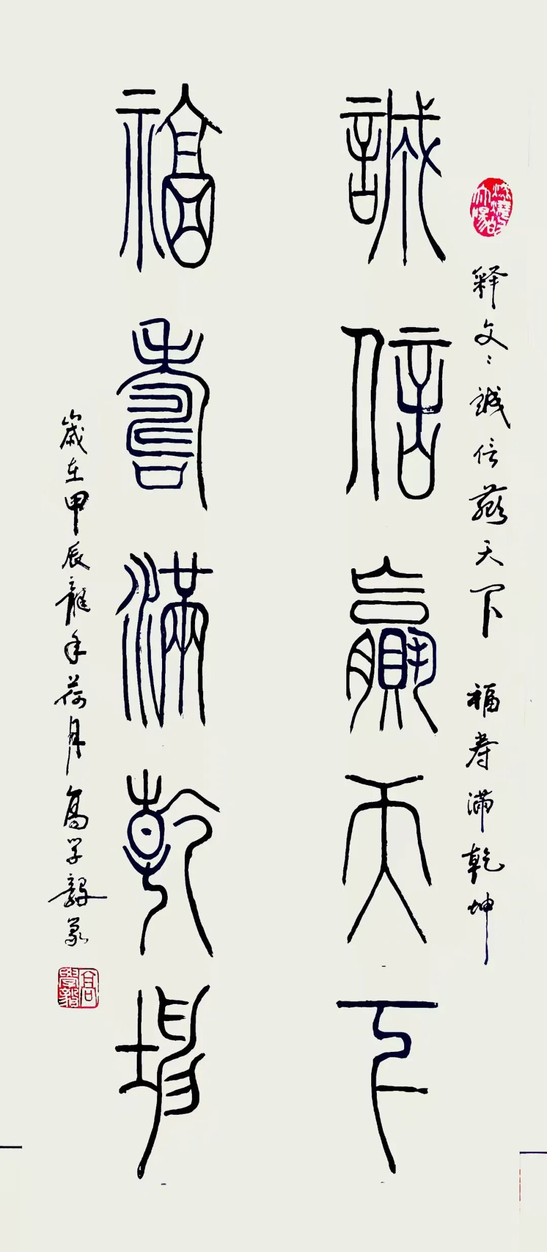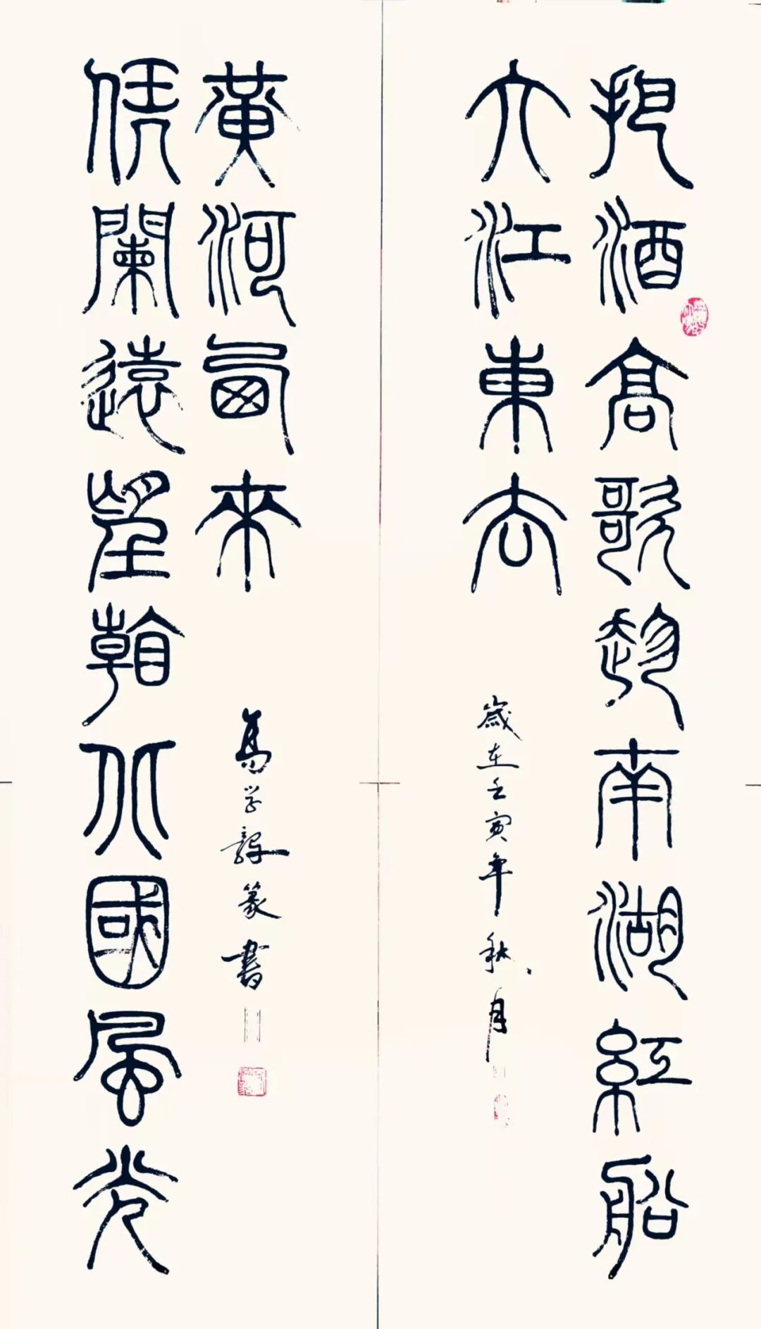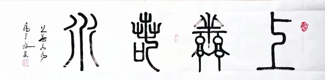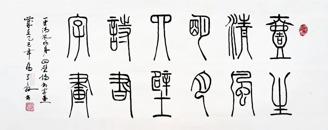 篆续秦碑渡金石,草随晋帖鉴古今。以秦篆为基构建端庄谨严的法度,以行草纵逸奔放抒发现代文人的情志旨趣,构建出既根植传统又面向当代的书法美学形态。从篆书的典雅刚劲到行草的磅礴婉转,每一件作品都是承载着深厚的传统文化基因,每一次挥毫实践也都是传统书法美学在当代文化体系中的精神再建。而其中所蕴涵的文化深度与美学价值,也早已是融入了书法文化复兴的滚滚洪流中,带着延续与创变活力砥砺前行,铸就非凡!