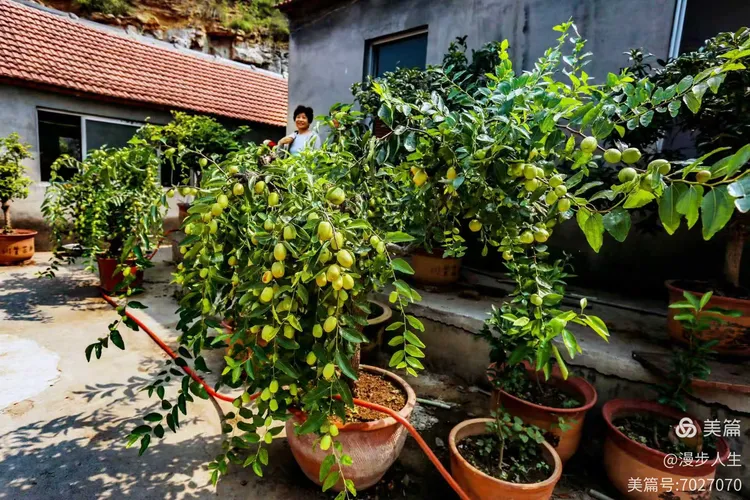 多盆绿枣翠当院,一架凌霄艳门前。