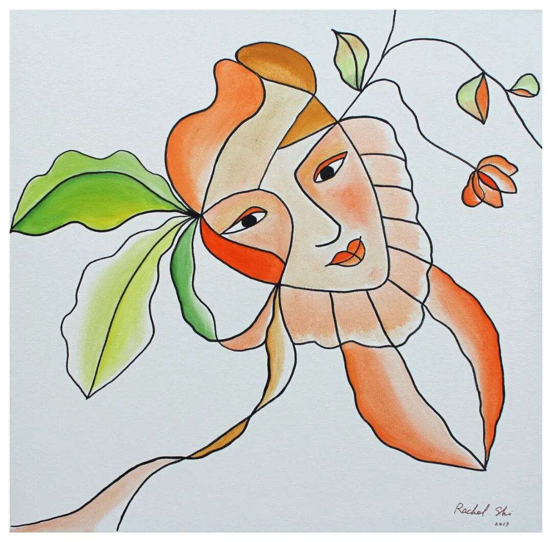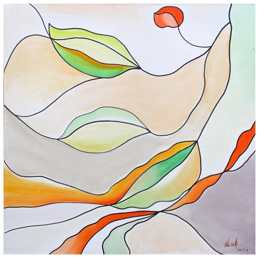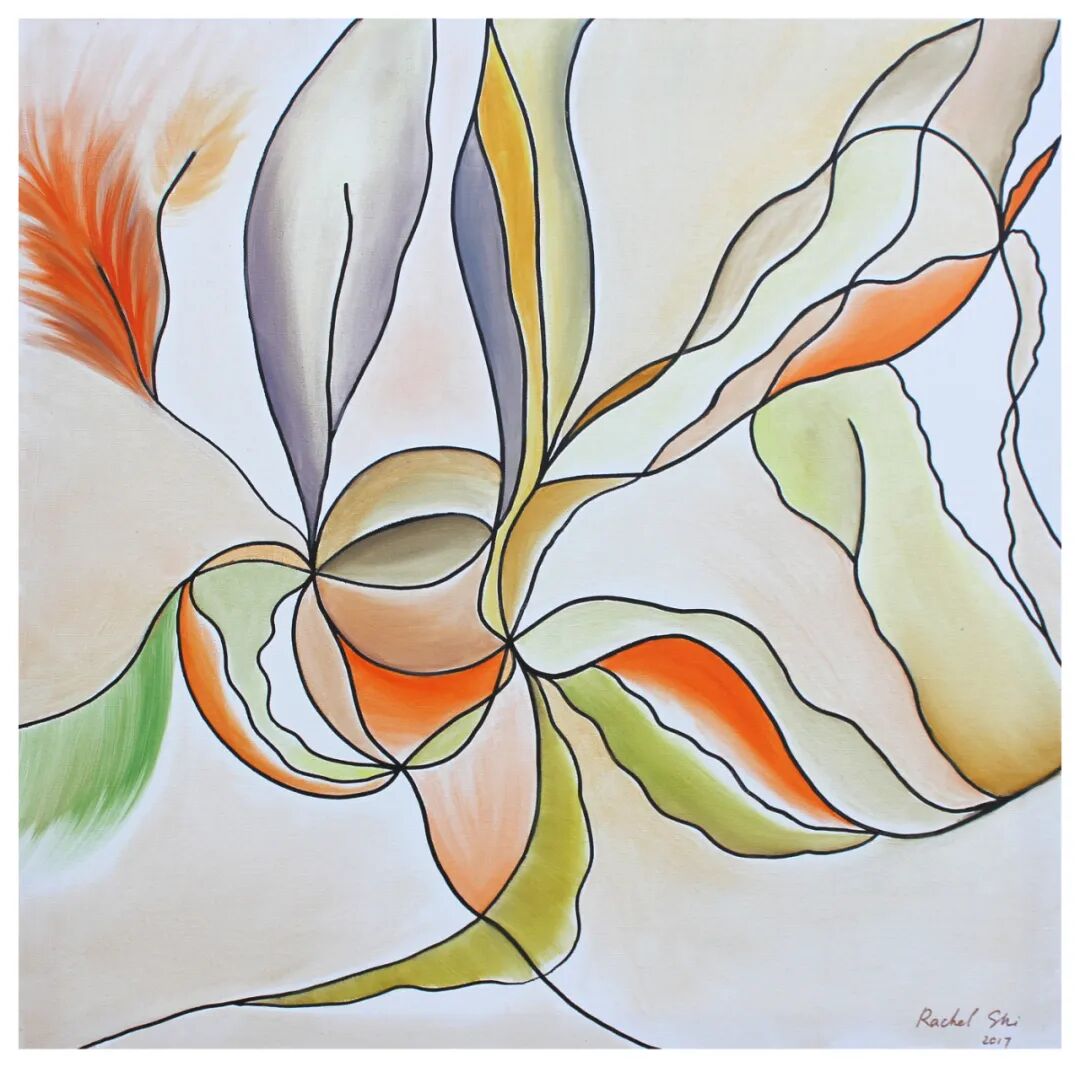 《彼岸花:复杂与和谐》,布面油画,30x30 in