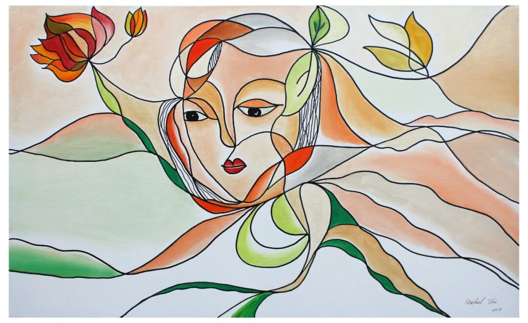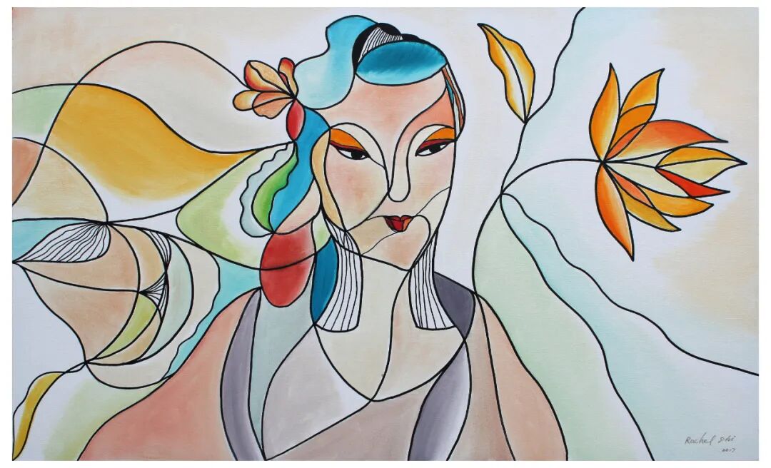 《彼岸花:历史中的女人》,布面油画,30x45 in