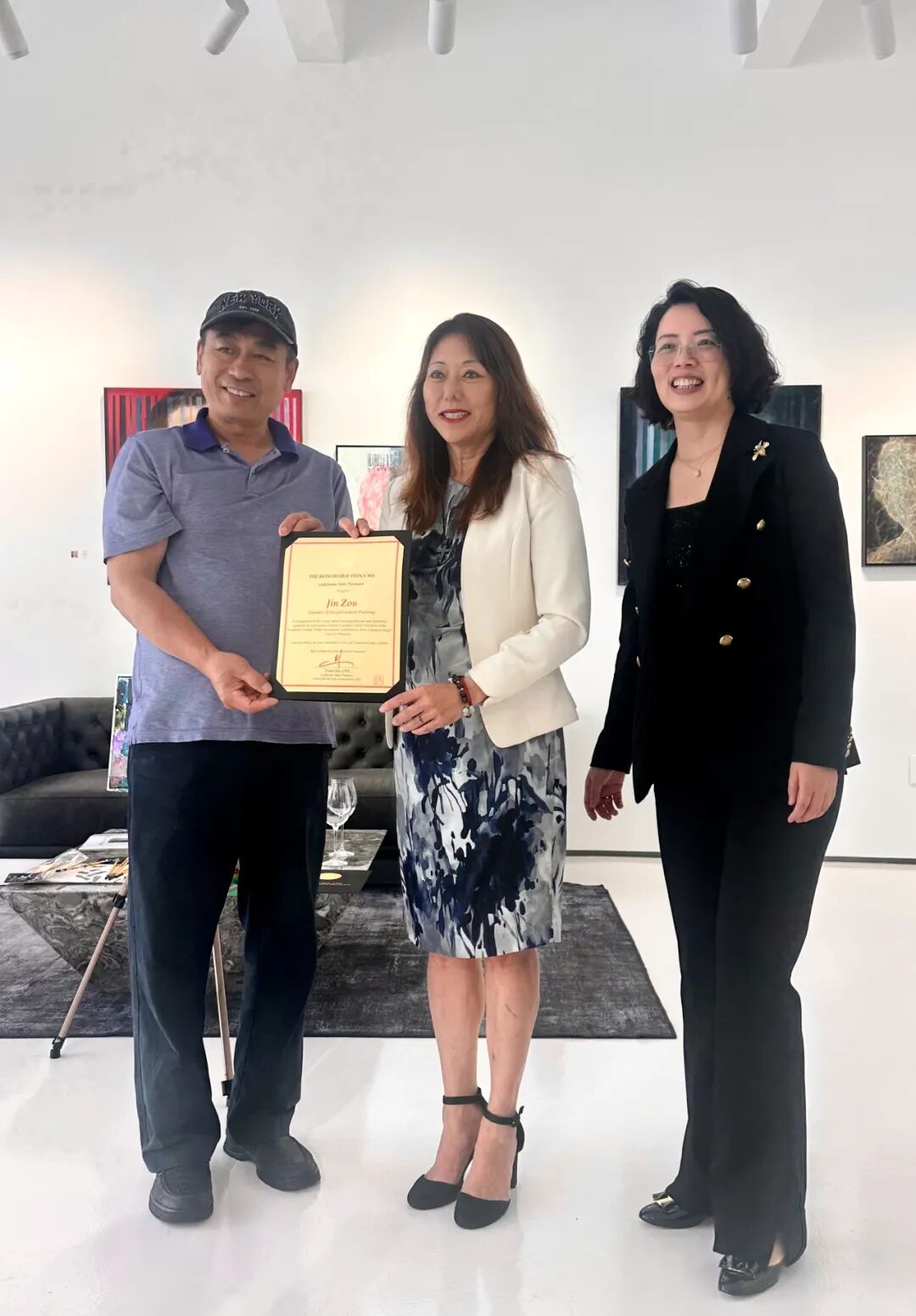 在旧金山市中心GEFEN画廊受到加州财政部长马世云的嘉奖。肯定左晋在艺术领域的杰出表现,作为悟象派的创始人获得艺术杰出贡献奖。