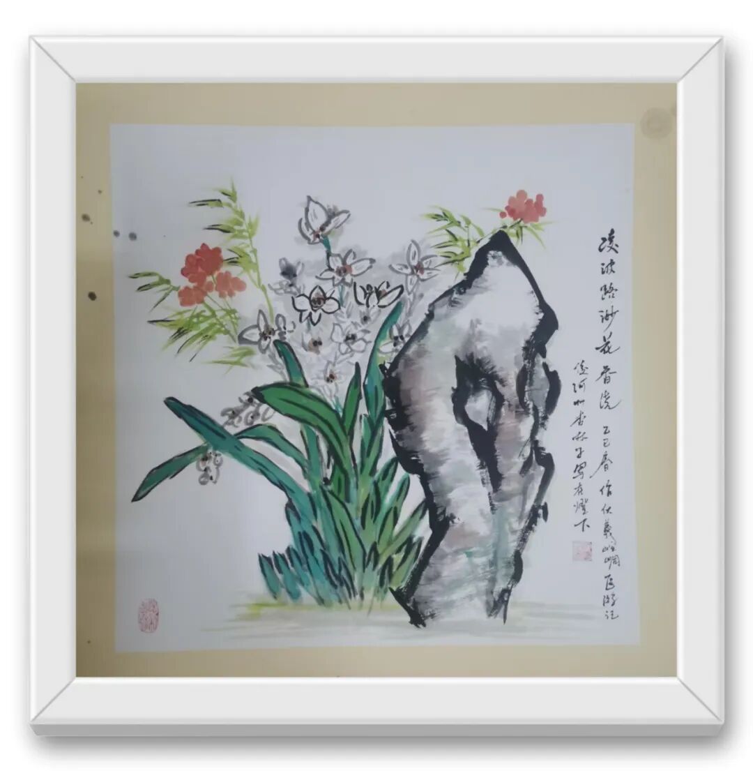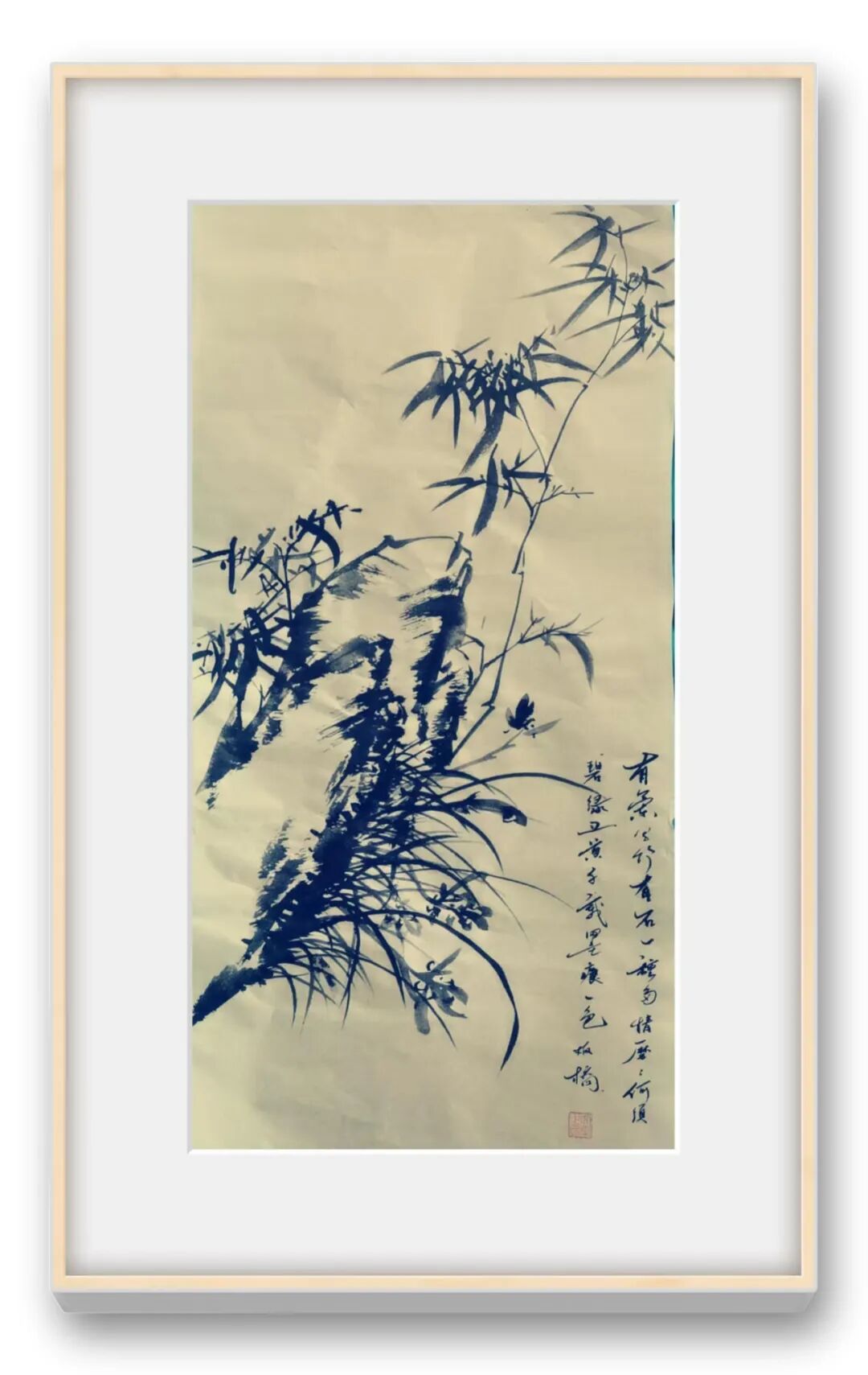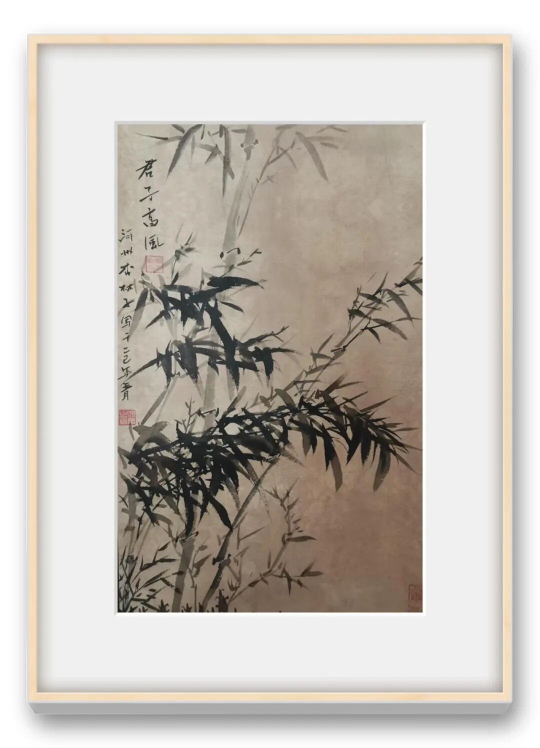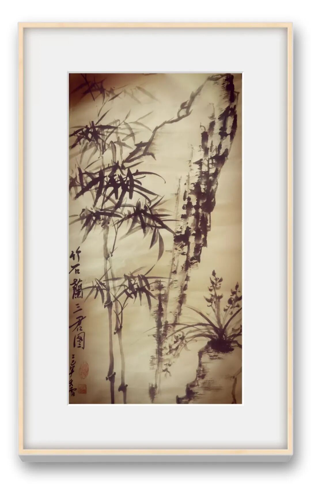品张文雷先生《竹石兰三君图》,墨竹挺拔劲秀,竹叶疏密有致,以浓淡墨色展现出层次与生机;石之皴法苍劲,兰草清雅,三者相衬,气韵和谐。笔墨简练却意趣盎然,将竹之高洁、石之坚毅、兰之清幽的品格融于一纸,题款与钤印也相得益彰,增添了文人画的书卷气。单竿竹修长挺秀,竹叶姿态灵动,似有清风拂过。题诗书法洒脱,与墨竹笔墨呼应,诗中“虚心劲节耐霜寒”等句,更借竹抒怀,体现出对竹之高洁品性的赞颂。整幅画笔墨相生,意境清逸,既具绘画的视觉美感,又含诗词书法的文化意蕴,是一幅富有精神内涵的文人墨竹佳作。