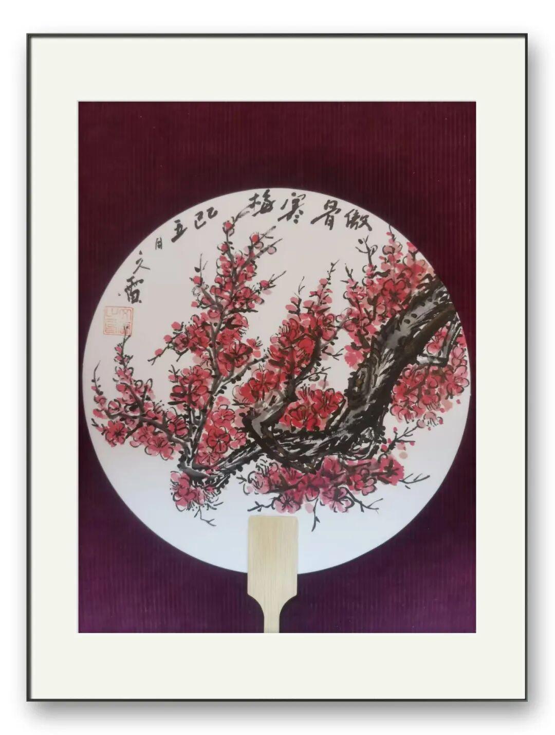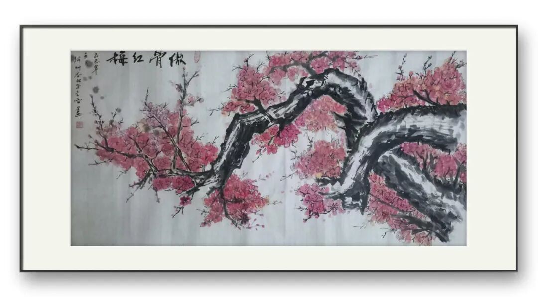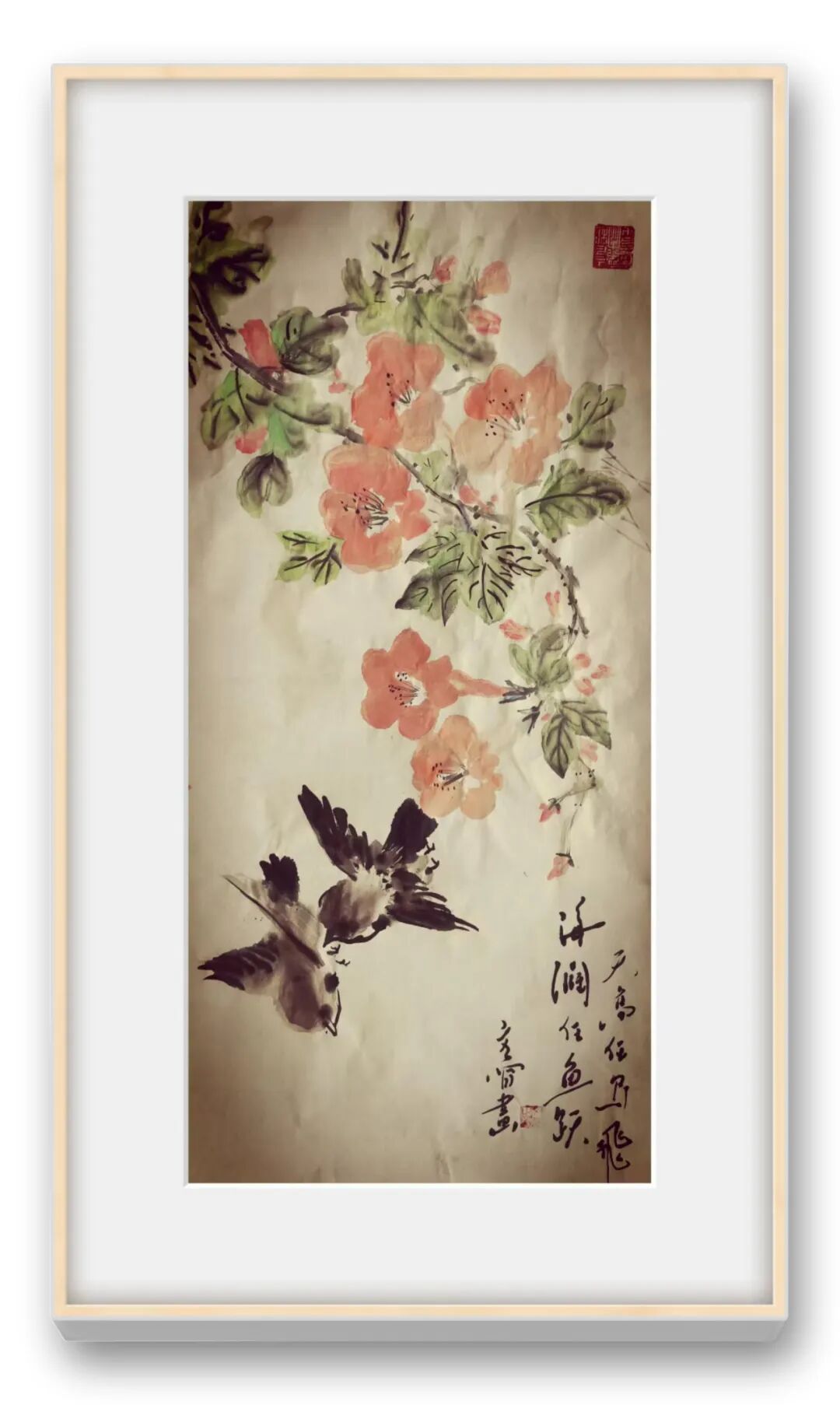 张文雷先生画花鸟,运色精妙,渲染轻清,色彩明艳亮丽,如阳光洒在花瓣上;运笔秀润,缜密而富有韵度,似舞者的步伐,轻盈优美。他尤擅画梅,笔下之梅于寒枝绽放,如暗夜中的明灯,焕发出生命的光彩;于艰难中展现豁达乐观,恰似坚毅的勇士,传递出民族精神的力量。其作品蕴含着对传统艺术文化的深厚修养,笔墨、书法、诗文等元素相互交融,尽显其学识之不凡。