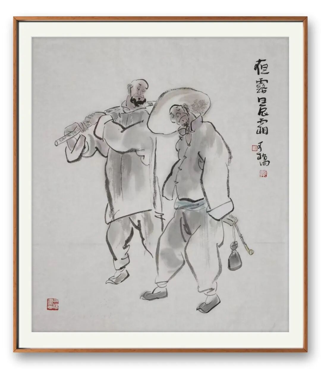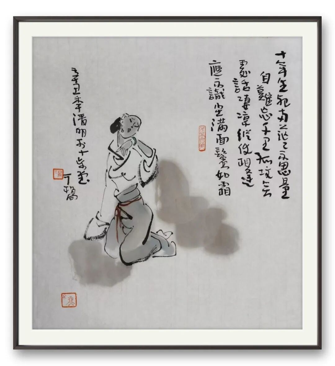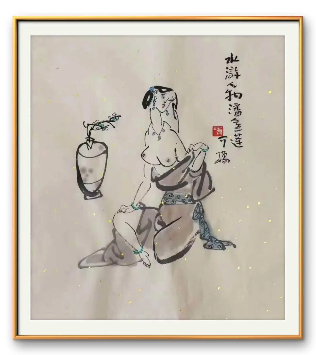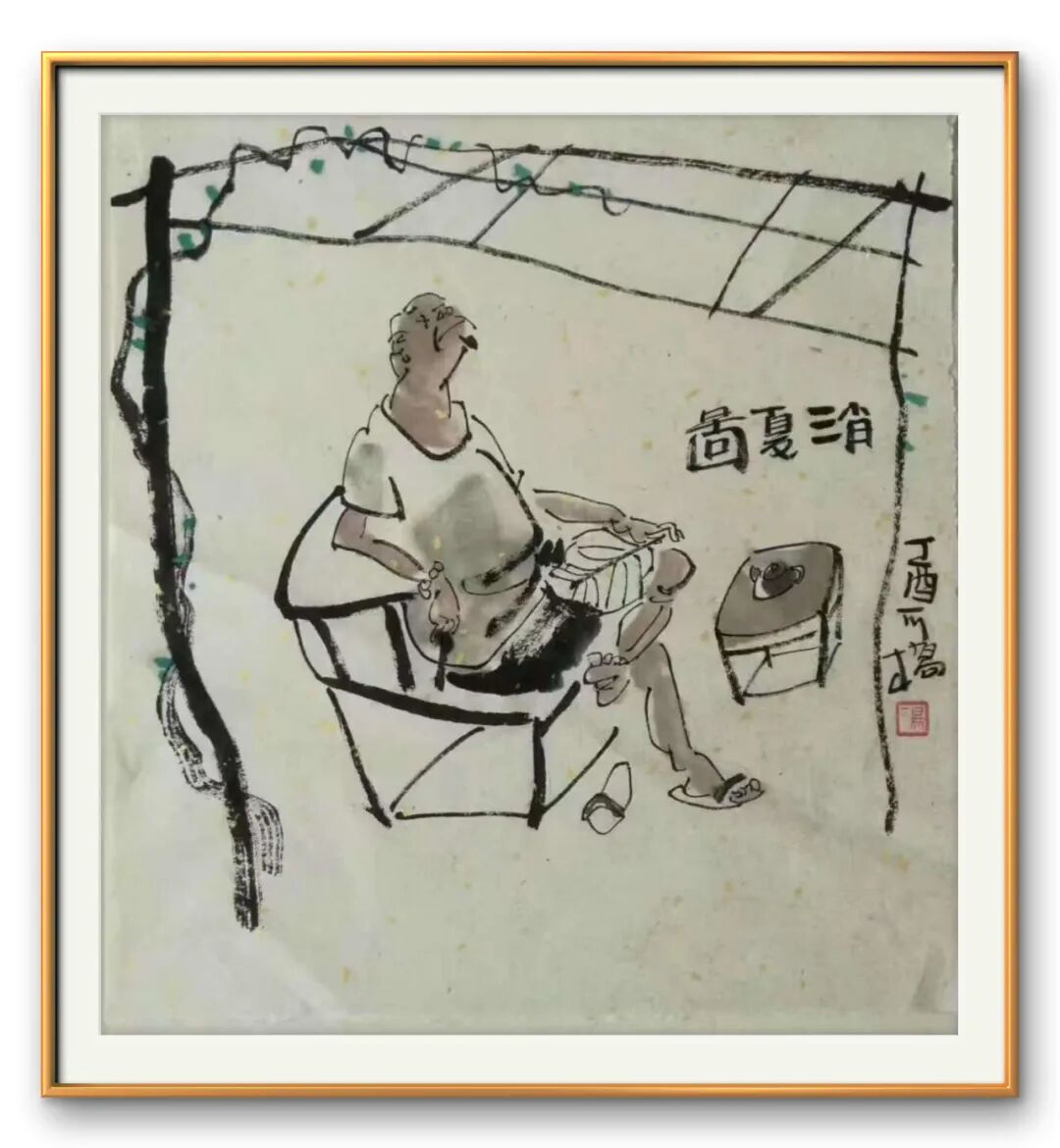 在人物造型上,汤先生深谙 “删繁就简” 之道。他不执着于细节的描摹,却能以简略之笔捕捉人物的神韵,寥寥数笔便让形象鲜活起来 —— 或含嗔带笑,或凝思远眺,喜怒哀乐皆跃然纸上。这种 “传神” 的功力,源于他对 “以书入画” 的深刻践行。笔线中藏着书法的筋骨,提按转折间见出中锋的稳健,墨色浓淡里透着文人的雅致,最终成就了画面 “淡雅意境” 的独特美感,不艳俗、不张扬,却如清风拂面,耐人寻味。