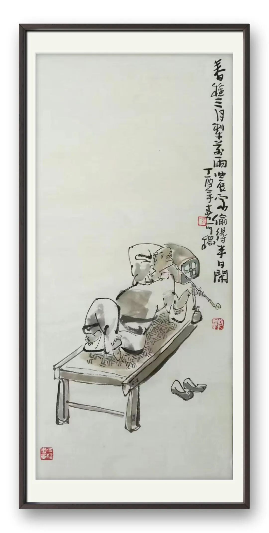 若细究画面的整体构思,更能窥见汤先生艺术思想的深度。他将画理的严谨、禅心的通透与自身的人生感悟熔于一炉,不是简单的元素叠加,而是浑然天成的融合。画中的留白,既是构图的巧妙,也是禅意的留白;人物的姿态,既是造型的需要,也是心境的流露。这种 “淋漓尽致” 的表达,让作品超越了视觉的观赏,成为观者与画家精神对话的桥梁。