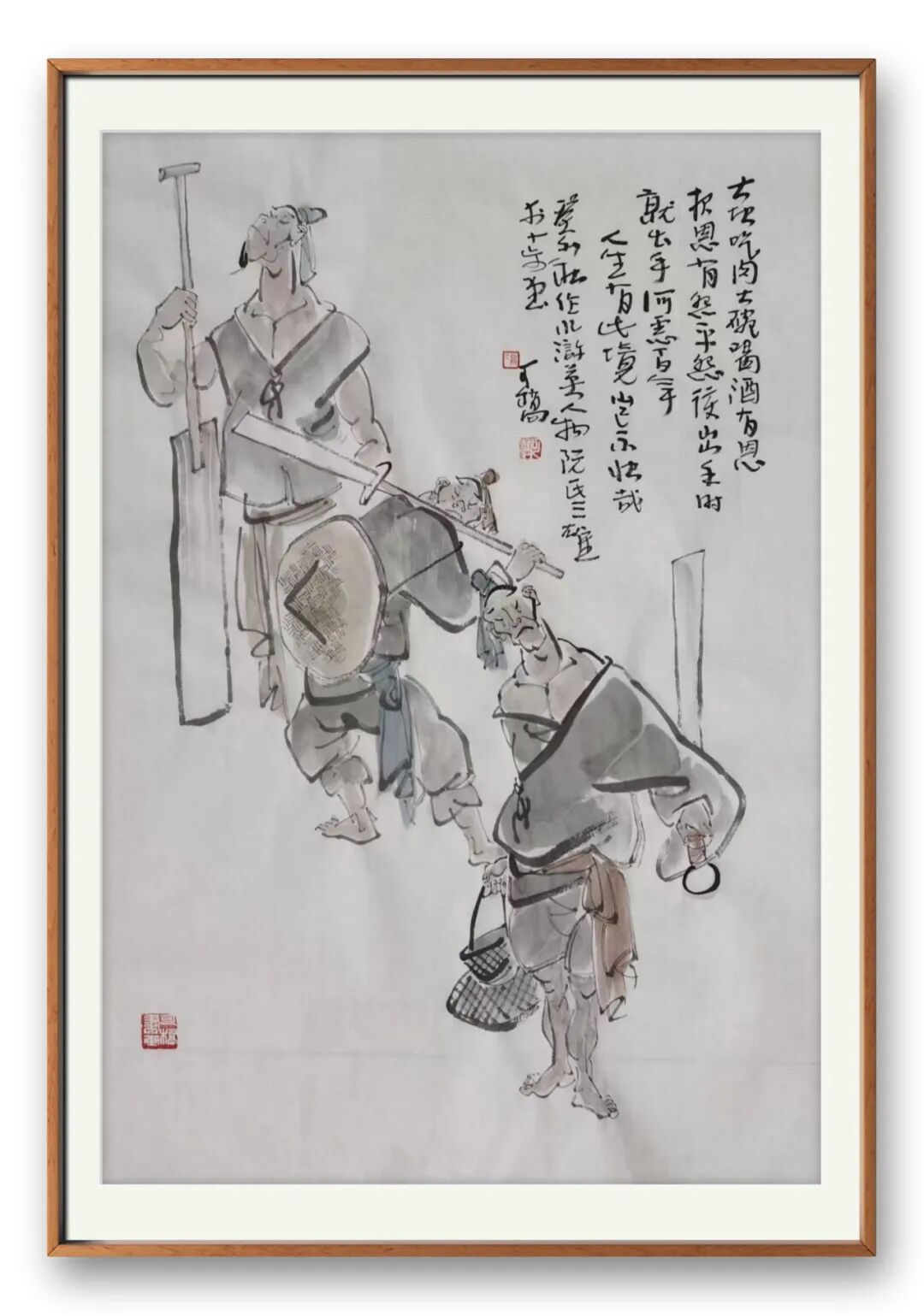 汤先生的作品之所以动人,不仅在于画艺的高超,更在于 “画如其人” 的真诚。他潜心艺事多年,不为名利所扰,得失淡然处之,只以 “静心安神” 为念。这份纯粹的心境,化作笔墨间的禅意,让他的画 “画中有画,画中有我”—— 画的是人物,也是自己的心境;是景象,也是生命的感悟。他笔下的人物,动态劲利却不张扬,即便繁杂斑驳,也能在体势偃仰间找到呼应,开合得当、穿插有致,隐显处藏着巧思,虚实间生出韵味,真正做到 “画外有画”。古人云:“画者,心之声也。” 汤可桥先生正是以笔墨为喉舌,写出了心灵的声息。他将水墨的写意精神发挥到极致,笔墨内涵丰富而深刻,意境空间深远而辽阔。要绘出这样的作品,需有宽博的胸襟、磊落的气概,作画时不激不厉、凝神静气、从容不迫,方能让情感与笔墨同频,让禅意与意境共生。这样的画,早已超越了 “像与不像” 的浅层评判,成为传递情感、寄托理想的精神载体,也让汤可桥先生的艺术,在当代画坛中自成一派,散发着独特的光芒。