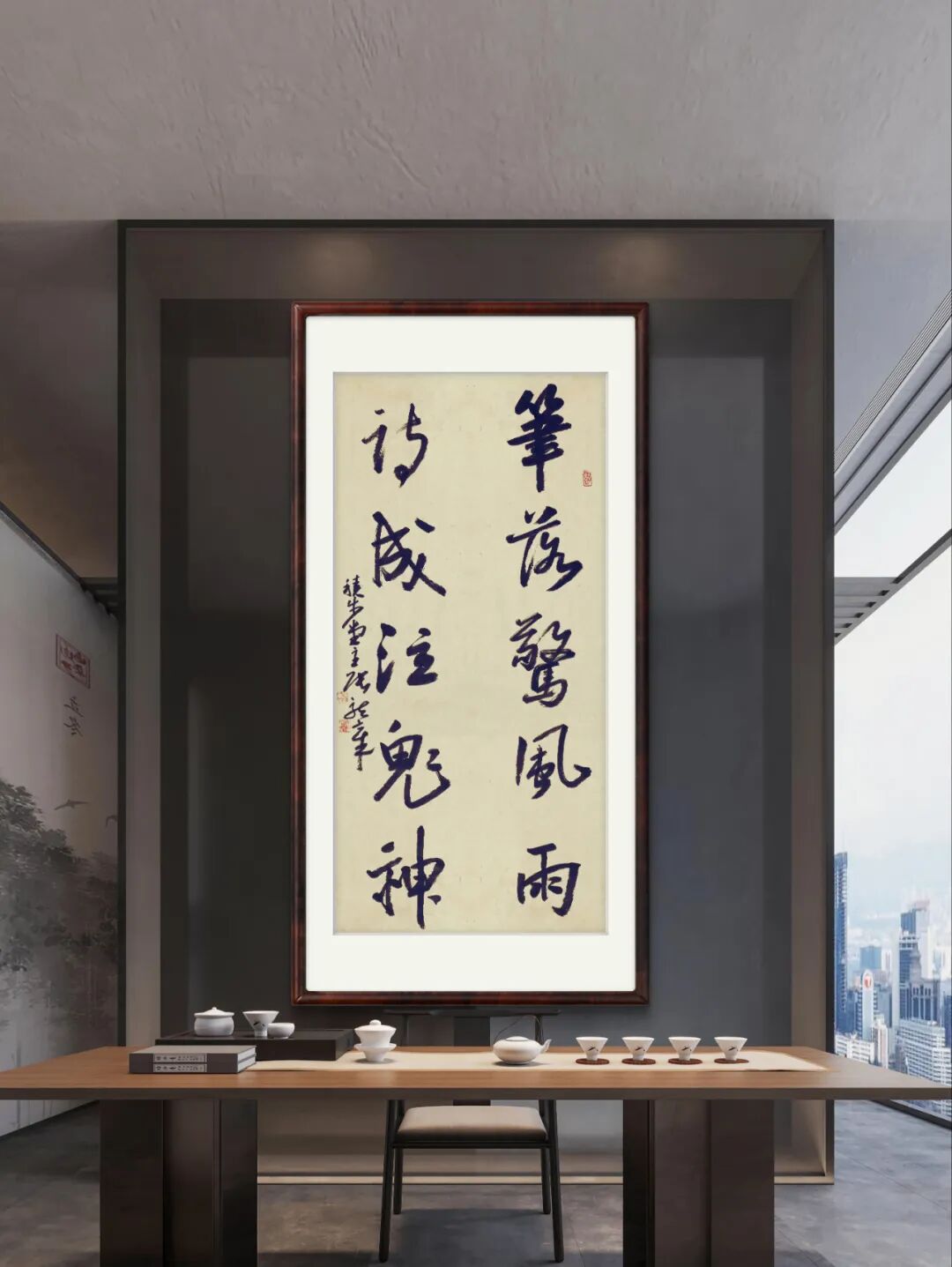 张龙章在工作闲暇时专注于中国书法艺术的研习与实践,从二王开始入手,兼学唐楷褚遂良法帖,对米芾、王铎、八大山人、于右任等诸家用心揣摩、追慕。他的书法作品线条利落简约、圆浑、厚实且灵逸,散发着浓郁的正大气象,给人以美感。