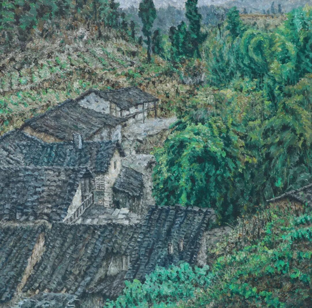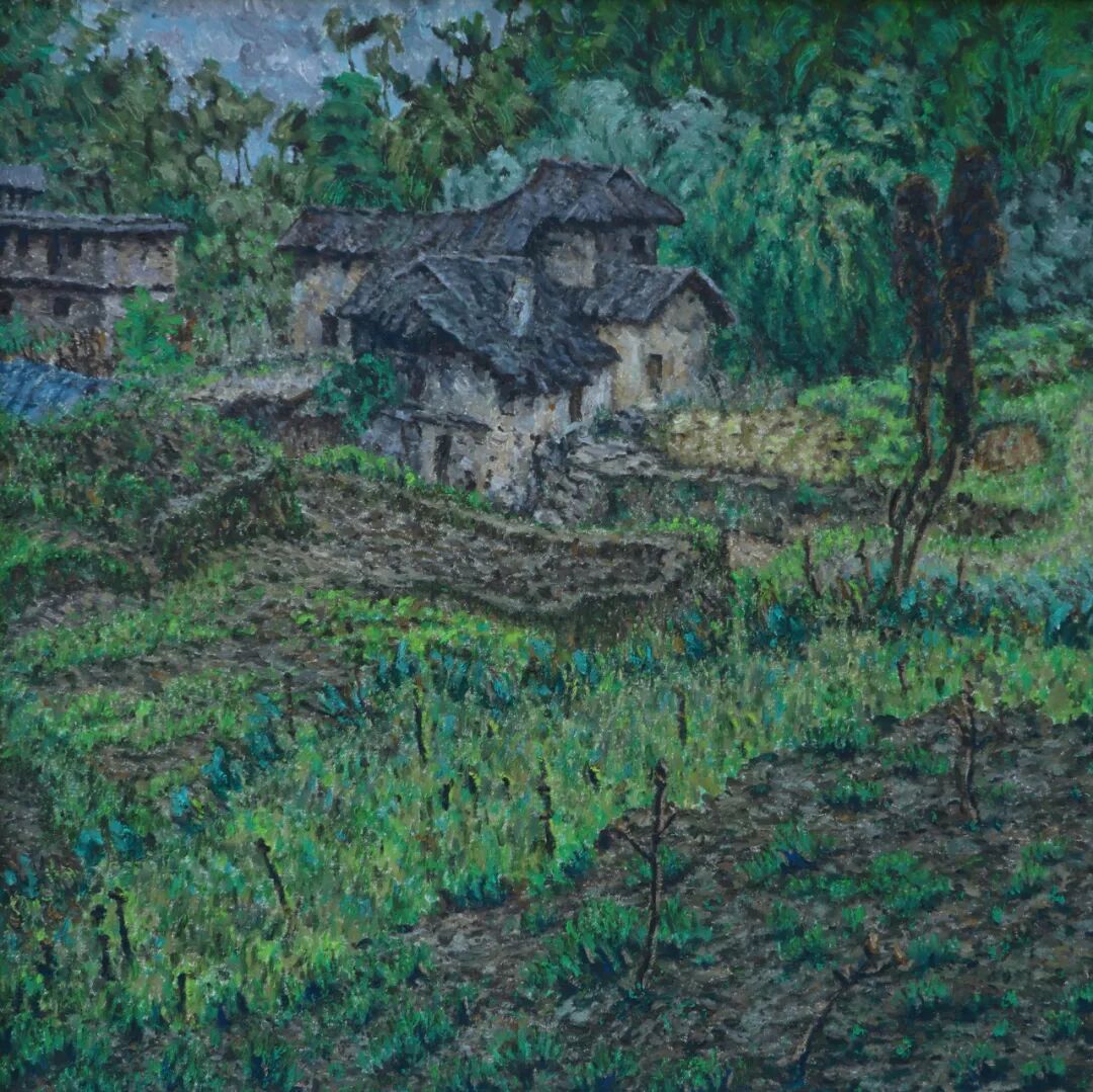 在艺术风格上,肖亚东深受传统与现代艺术的双重影响。他继承了写实主义的传统,注重对物象的真实描绘,让观者能够在画面中感受到生活的真实质感。同时,他又巧妙地融入了现代艺术的表现手法,通过色彩的运用和构图的创新,赋予作品独特的艺术感染力。在《大山》系列作品中,他以独特的视角、写实的手法展现了大山里的农家景象。田边地角、房前屋后、老人孩子、劳作小憩等场景,在他的笔下真实而细腻地呈现出来。画面中,大山的雄伟与农家生活的质朴形成鲜明对比,给人以强烈的视觉冲击和心灵震撼。这种将传统与现代相结合的艺术风格,使肖亚东的故乡油画系列作品在当代画坛独树一帜。