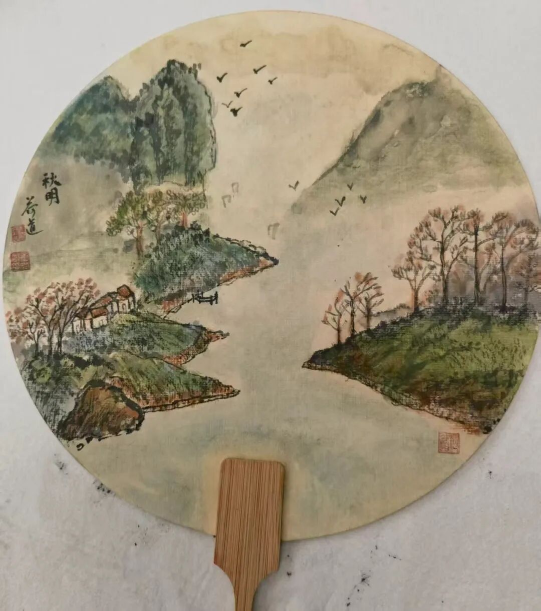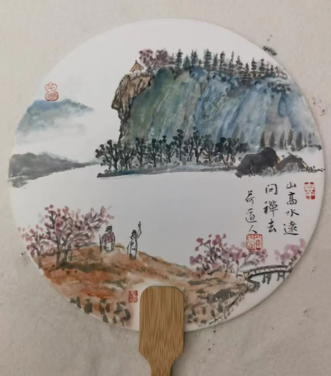 在中国画艺术中,意境营造始终被视为最高的美学追求。看章尚敏先生的众幅山水画,显然也是有着自己独特的写意妙造在里面。那一幅幅山水画境,既承袭了传统文人画所注重的抒情气韵,更是能在此基础上,氤氲出一种宁静的寂寥之美,让人不禁想起唐人刘禹锡所言诗句,是谓山桃红花满上头,蜀江春水拍山流。或许是南派山水的温润滋养了他的笔墨情怀,又或许是他骨子里便带着江南文人所特有的雅逸与灵秀。总之,沉浸于他的山水世界,仿佛是步入了一片涤尽尘俗的化境,山水万物在此洗练,心神亦能随之悠然抒怀。山岚水气间以形写神,笔致构思时虚实相生,整幅画面,实乃眉黛遥岑,望之郁郁蒸蒸,一碧无穷也!常言仁者乐山,智者乐水,面对如此画境,试问又有谁能不心生向往呢?惟愿遁入其中,做一逍遥人,与山水共朝暮罢……