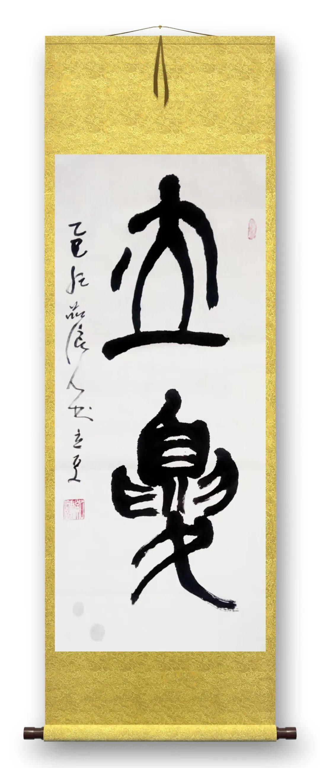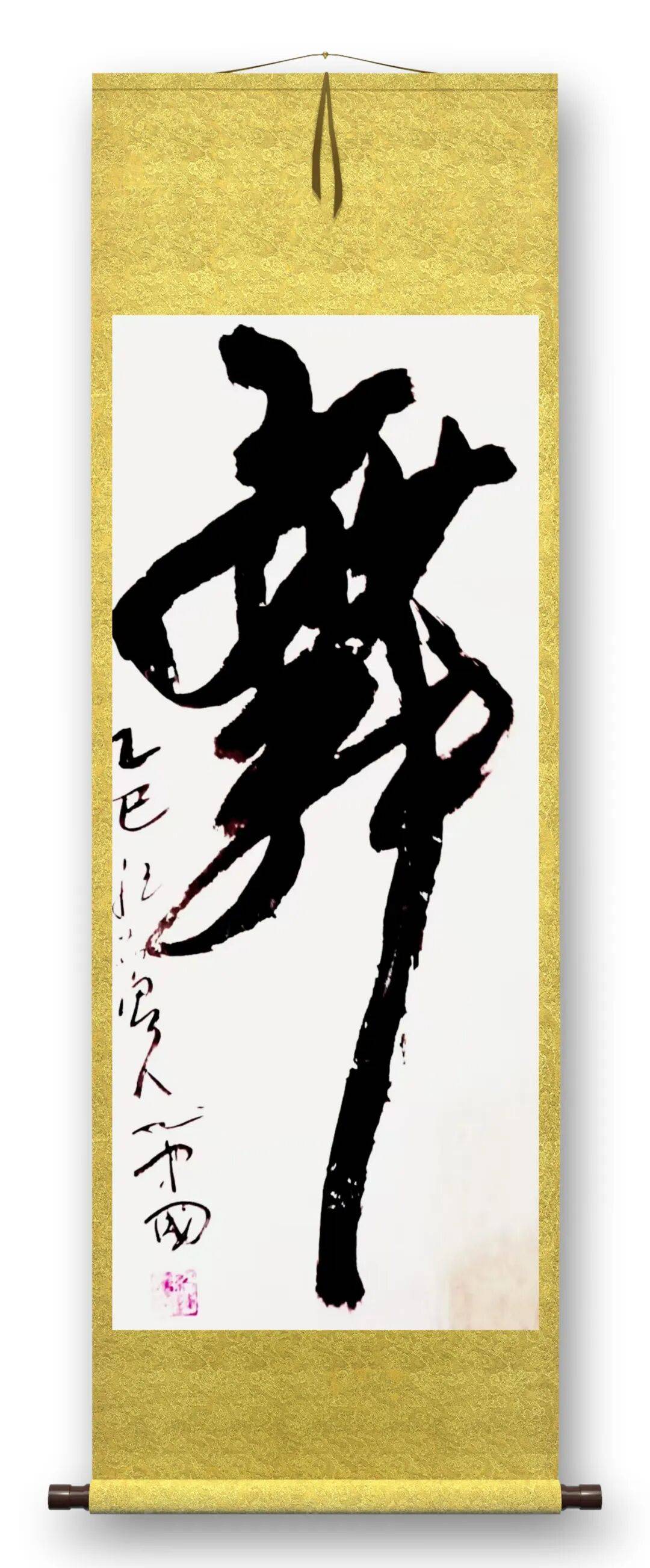 再看书法作品,纪连踽老师的书法同样极具个性与艺术感染力。以“舞”字为例,笔势灵动飘逸,线条粗细变化丰富,如舞者身姿般曼妙,每一笔都充满了韵律感,仿佛能看到舞蹈时的舒展与灵动,将“舞”的意趣通过书法的形式完美呈现。“海之魂”三字,笔力雄浑厚重,笔画之间的呼应与连贯,展现出大海的磅礴气势与深邃内涵,仿佛能感受到海浪的奔涌与海洋的浩瀚精神。“天下归心”四字,笔锋锐利,结构布局富有张力,传递出一种对天地宇宙探寻的哲思与勇气,笔画的顿挫与延伸,都彰显出书法艺术的力量感与思想性。