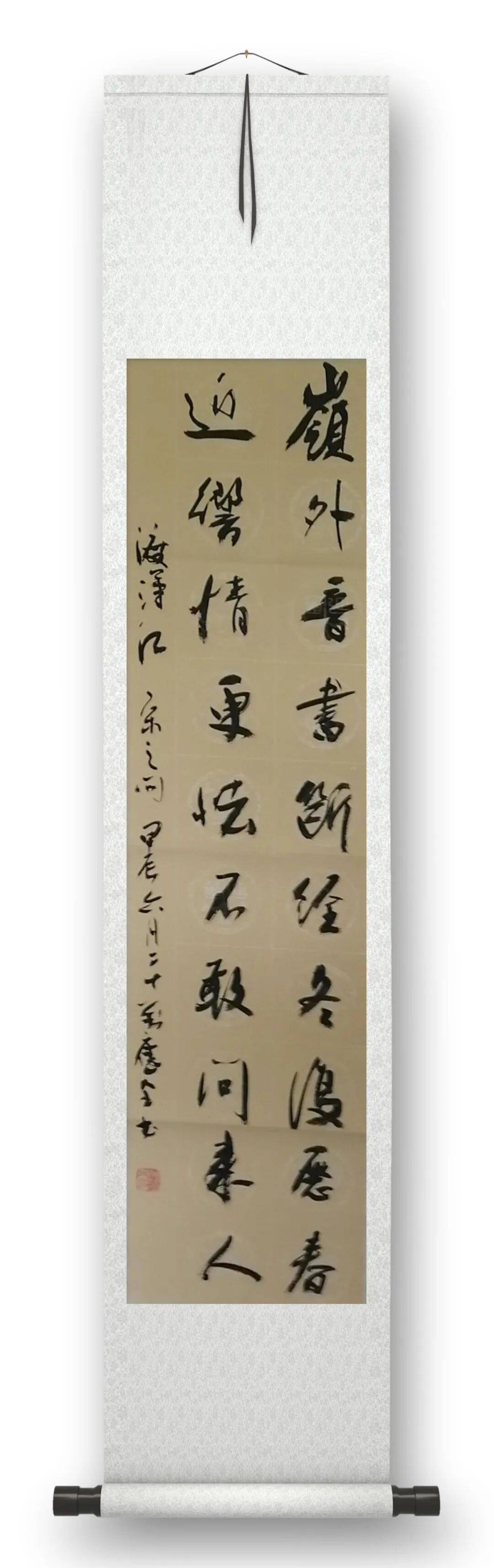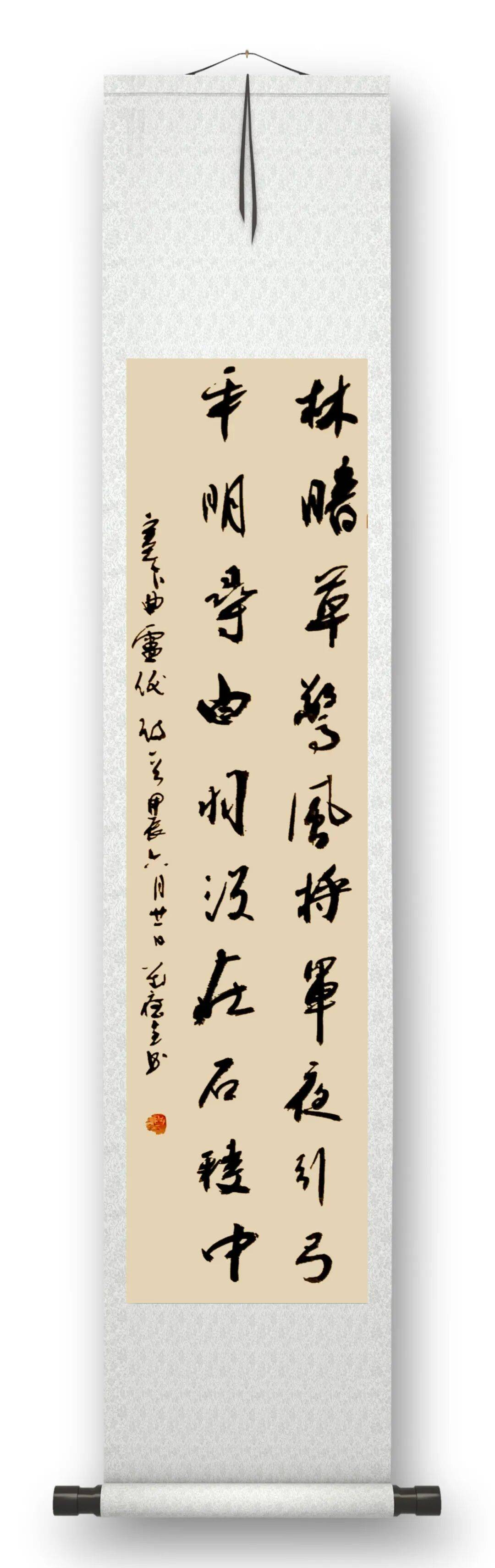 先生对书法的虔诚,更体现在创作的每一个细节里。他从不轻率落笔,每一幅作品都要反复酝酿、精心设计,小到一个字的间架结构,大到整幅作品的气韵贯通,都力求做到高古、清雅、稳厚,绝无半分火气与媚俗。他常说,认真对待作品,既是对自己艺术追求的铸炼,也是对观赏者的尊重,更是对中华传统文化的敬畏。这份敬畏,让他在快节奏的当下,始终保持着慢下来的定力,让笔墨在时光里沉淀出岁月的醇香。
