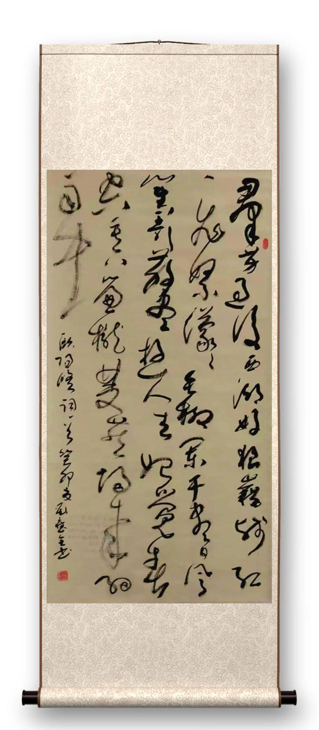 细赏先生的作品,无论是丈幅巨制的肆意挥洒,还是尺牍小品的精心收拾,都藏着 “取法乎上” 的匠心。运笔时,他如舞者踏歌,轻重缓急间藏着节奏的韵律;谋篇布局处,又似匠人筑屋,疏密有致里透着章法的严谨。字与字相依,如溪流婉转;行与行相衬,若远山叠嶂。尤其动人的是笔墨间的虚实相生 —— 浓墨处如磐石沉厚,枯笔处似孤松苍劲,淡墨处若云雾轻笼,在这般浓淡干湿的交织中,“意在笔先,笔随心动” 的韵势自然生发,仿佛能看见先生提笔时的凝神,落墨时的从容。