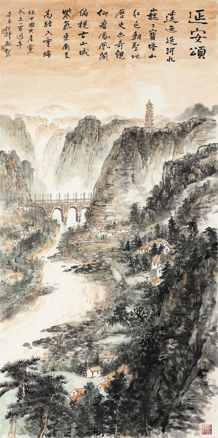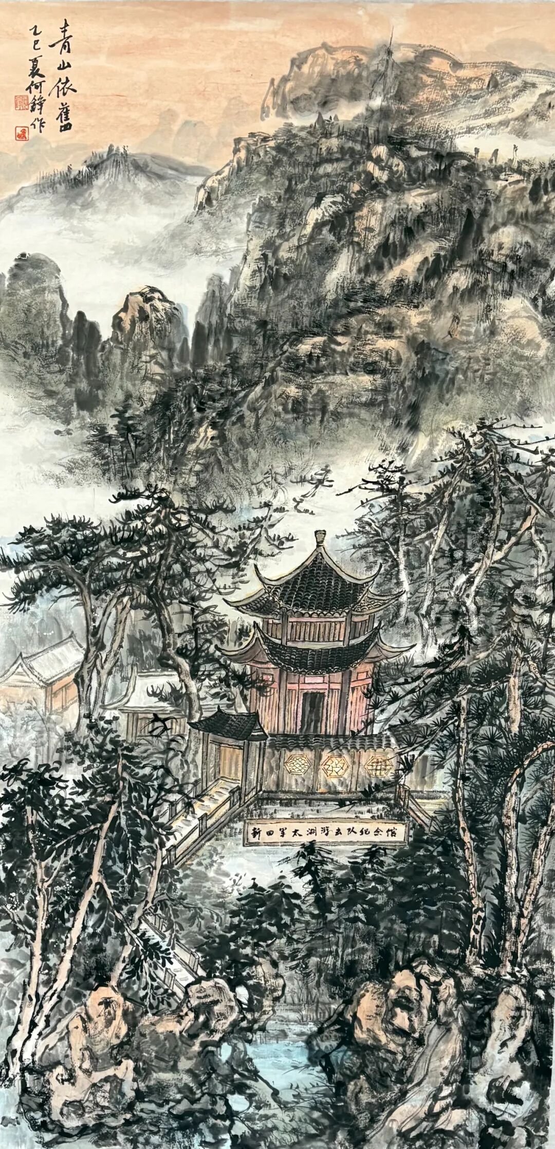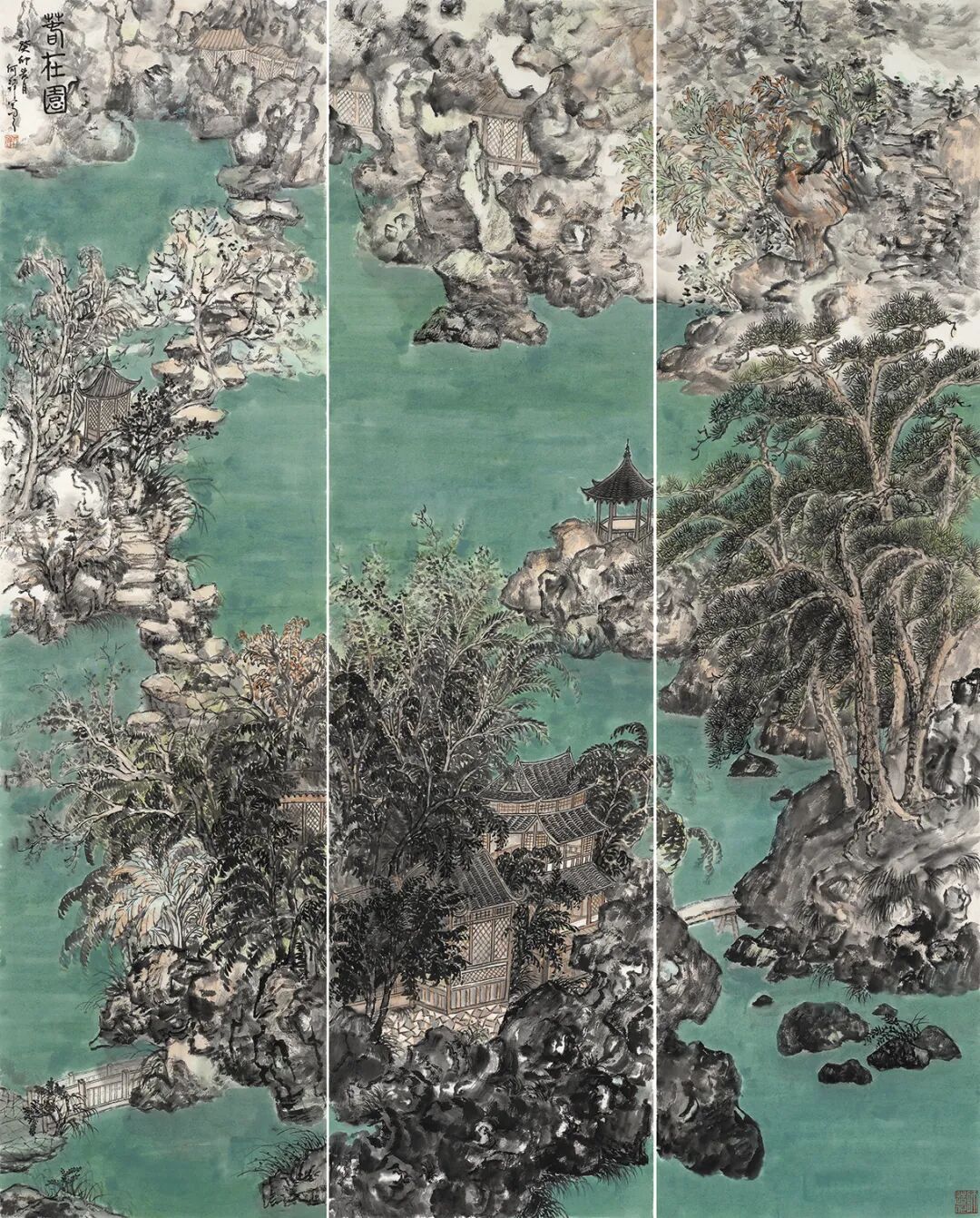 何铮女士的艺术创作是贯通笔墨与锦丝,精彩于中国画与刺绣两种美术形态。她以独特的文化学养与精湛技艺,实践着彼此滋养、相得益彰的文化生态。这份成就,既得益于苏州刺绣厂严谨的创作根基,同时也离不开在美专画院的系统学习。她师从殷濓君、朱凤、张继馨、周矩敏等名家,可谓师出名门,博涉多修,于是其艺术才华方可超越单一科目的局限,并最终形成了双栖具优的个人成就!观山水作品,可以陶醉于村居新绿的气韵里,从清绿浅绛中可以清晰感受起笔落笔时到来自宋元传统的气质滋养与江南水乡特有的温润气息。