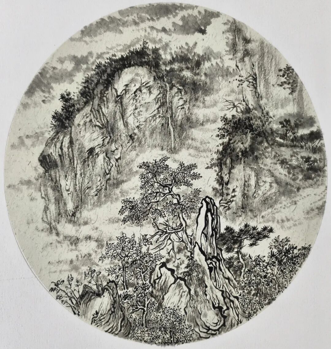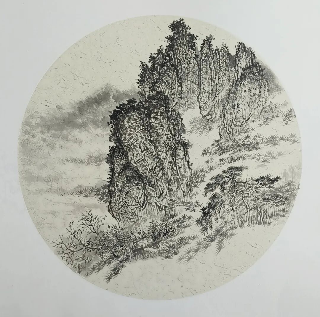 蜀山烟云-圆径33厘米硬麻卡(2024年)
