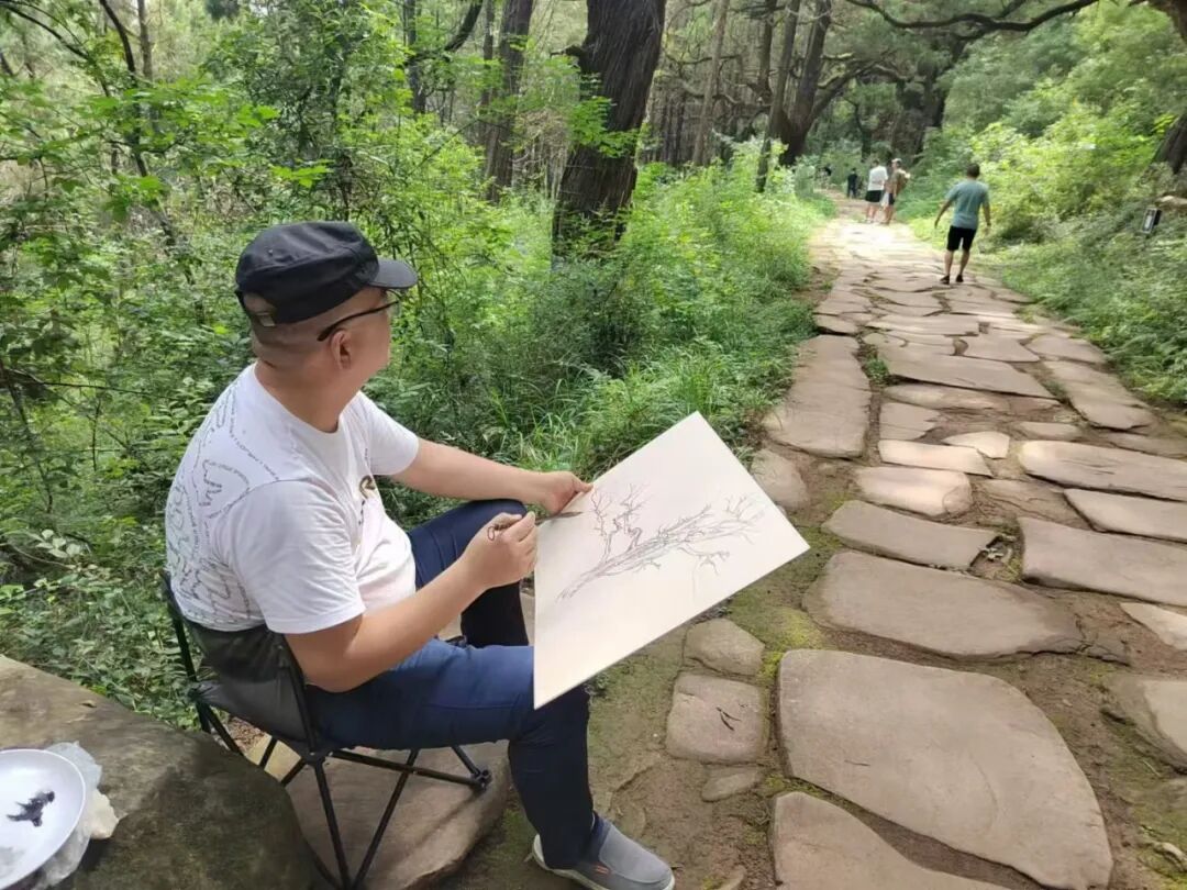 千年之舞(拦马墙古柏)10寸15骨成扇(2024年)