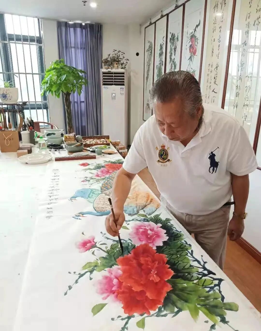 绿琼枝华诗情在,惠风拂花闪彩霞。能在花鸟画方面达到如此高的水平,奉献出如此令人惊艳的艺术作品,应该归于先生的悟性和灵才之气,先生全身心继承了传统花鸟的典范,丹青百家皆被先生深谙十分,其作品淋漓酣畅,画风大气秀丽,可以说是把花鸟的情态与精髓展现到了极致,欣赏其作时,总是不免令人感受到一股笔所未到韵已纯,紫霄缨络垂彩屏的艺术风趣,丹青大家,造极艺巅!