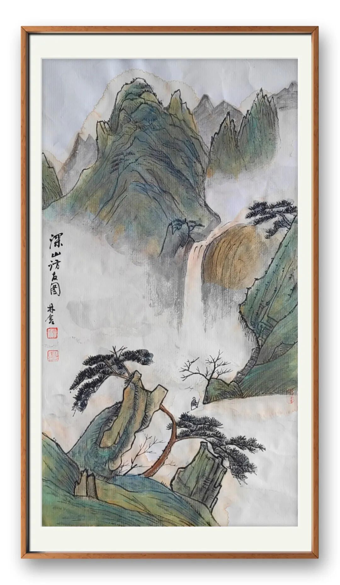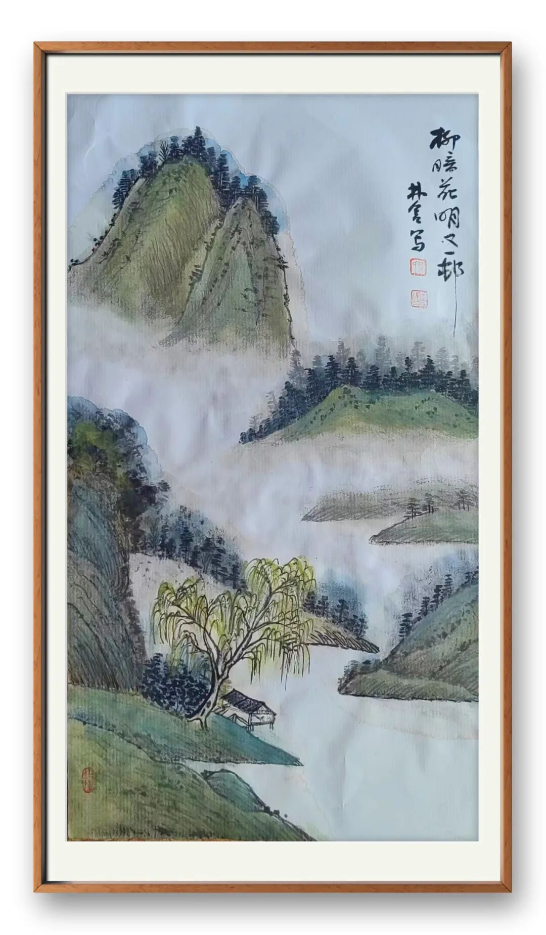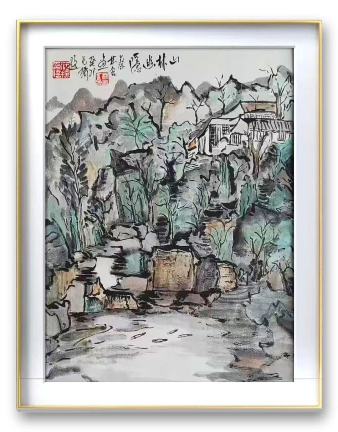 老师的山水,是心与自然的对话,是笔墨与山河的共鸣。她笔下的山石,非简单的形态复刻,而是将山石的苍劲风骨凝于笔端,嶙峋处见力道,褶皱间藏岁月;山间雾霭,亦非随意晕染,而是以淡墨铺陈,似流动的诗行,让静谧的山水有了灵动气息;坡上草木,或浓或淡,或疏或密,皆透着蓬勃的生命力,仿佛能听见风声穿林、溪流潺潺。这般意境,绝非凭空想象,而是她数十载踏遍名山大川,以眼观、以心悟,将自然之美内化于心后的必然呈现。线条的长短粗细、墨色的浓淡干湿,皆恰到好处,既守传统山水的章法,又融个人对山水的理解,让每一幅山水都有了独特的精神内核。