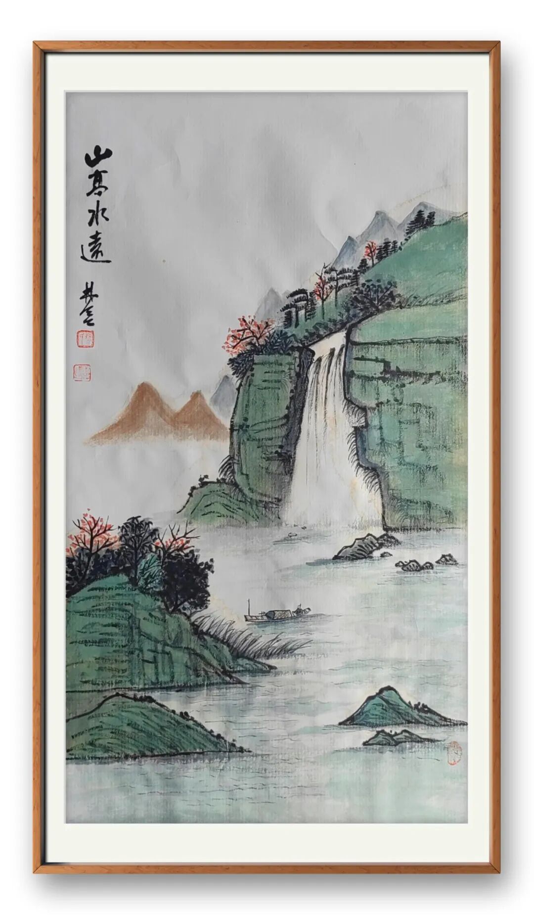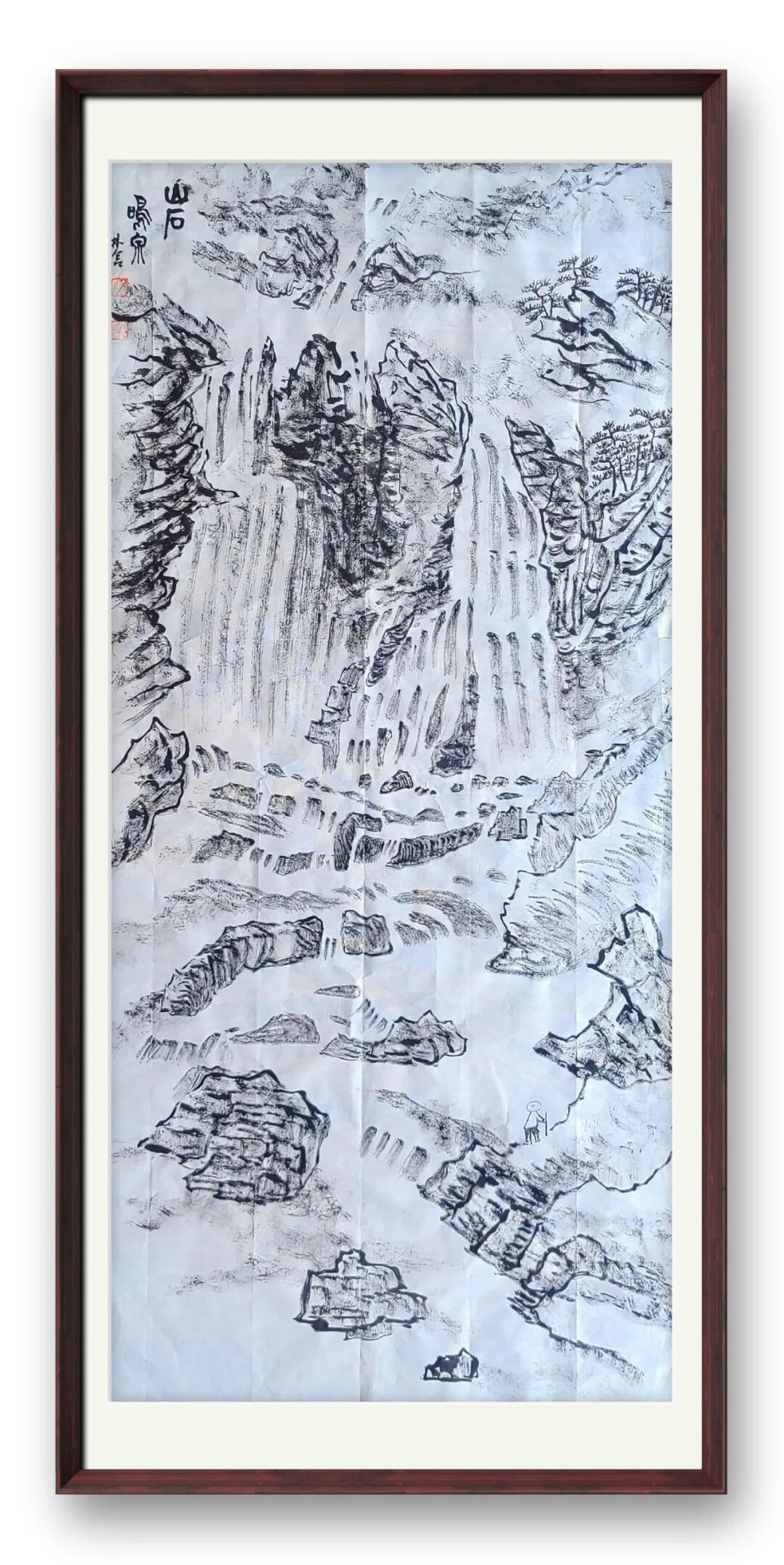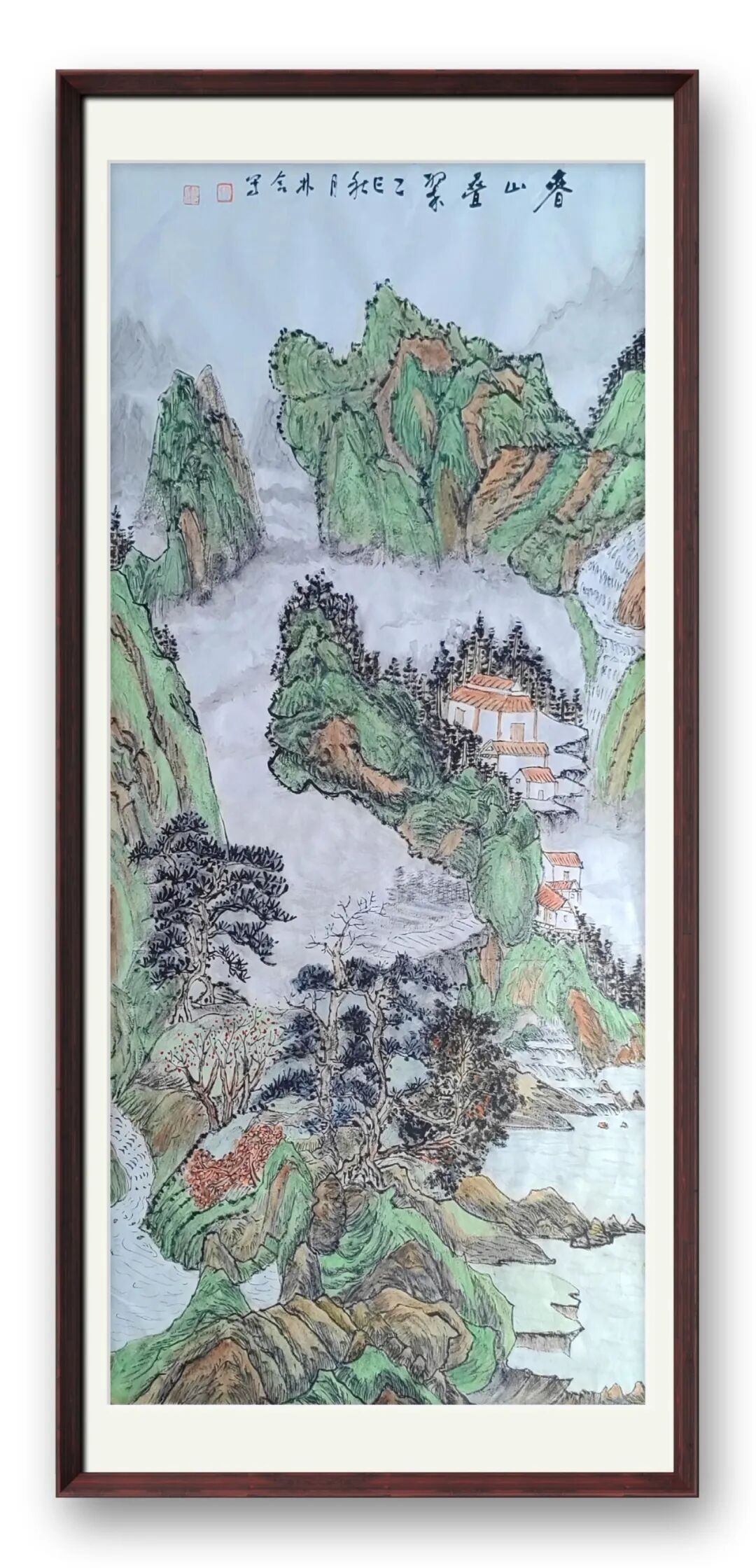 老师的山水,是心与自然的对话,是笔墨与山河的共鸣。她笔下的山石,非简单的形态复刻,而是将山石的苍劲风骨凝于笔端,嶙峋处见力道,褶皱间藏岁月;山间雾霭,亦非随意晕染,而是以淡墨铺陈,似流动的诗行,让静谧的山水有了灵动气息;坡上草木,或浓或淡,或疏或密,皆透着蓬勃的生命力,仿佛能听见风声穿林、溪流潺潺。这般意境,绝非凭空想象,而是她数十载踏遍名山大川,以眼观、以心悟,将自然之美内化于心后的必然呈现。线条的长短粗细、墨色的浓淡干湿,皆恰到好处,既守传统山水的章法,又融个人对山水的理解,让每一幅山水都有了独特的精神内核。