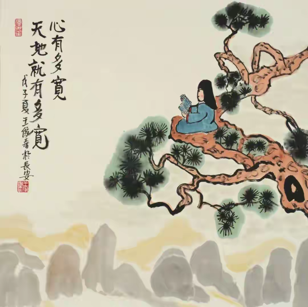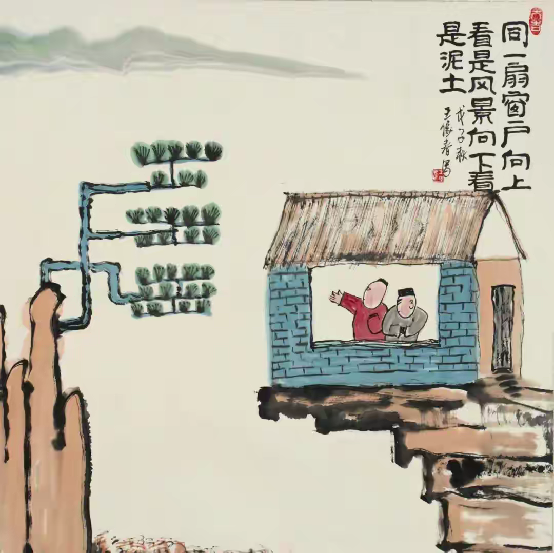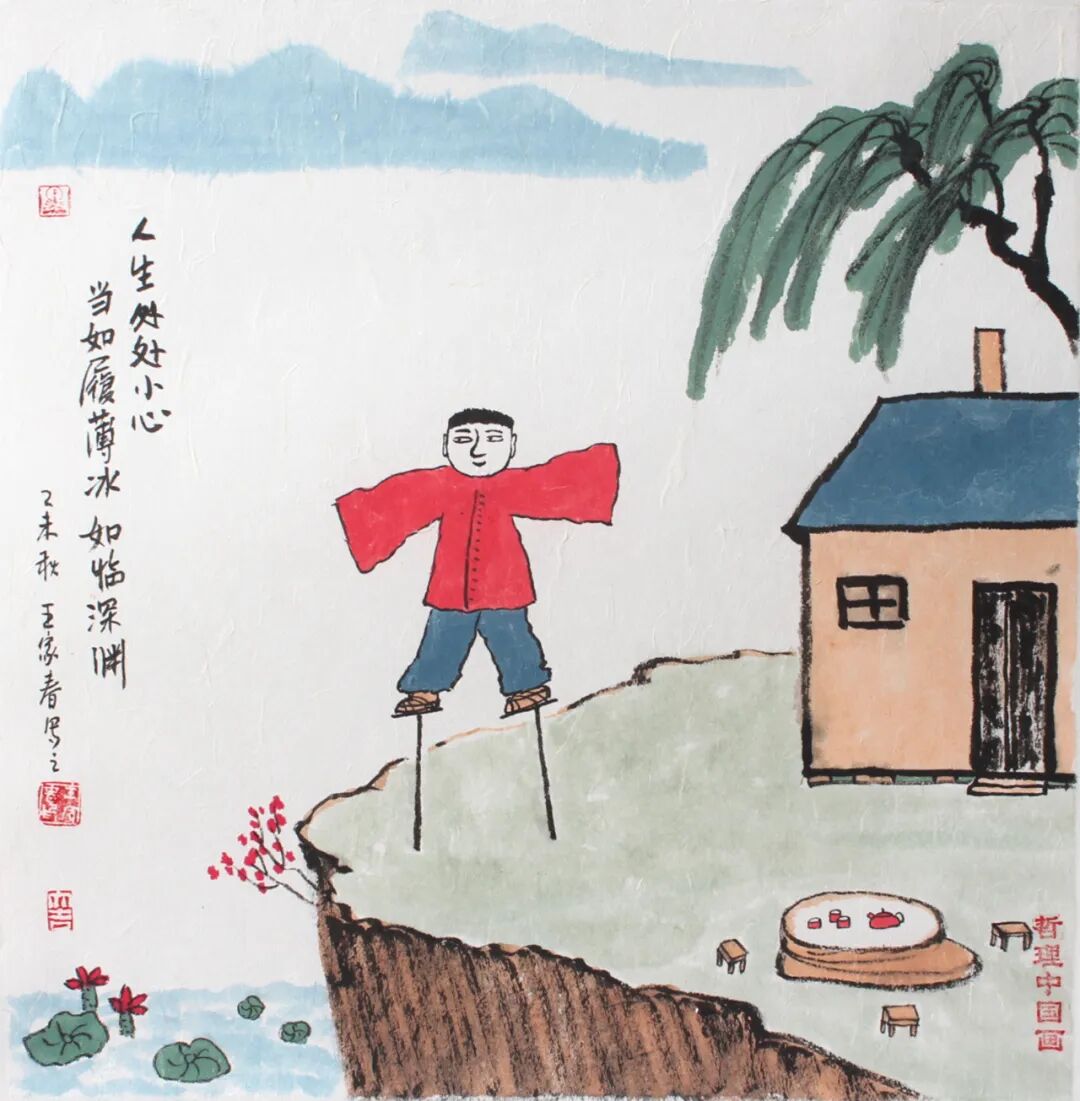作为二十一世纪文人画的代表,王家春的艺术实践展现了传统文人画在当代的嬗变轨迹:从丰子恺式对生活情趣的诗意观照,转向对哲学智慧的深度挖掘,更强化了对现代人心理状态的关怀。其作品以朴素方式讲述深刻道理,充满童趣的画面既是心灵独白,更是给当代人的"精神解压包"。在浮躁的现代社会,这些"哲理小品"如清凉散,让人在会心一笑间领悟生命真谛,证明传统文人画既能扎根生活土壤,又能承载精神大道,更能成为缓解心理压力、给予人积极向上力量的艺术动力,为当代艺术如何传承与创新、如何介入大众精神生活提供了有益启示,彰显了文人画在新时代的独特价值与当代意义。