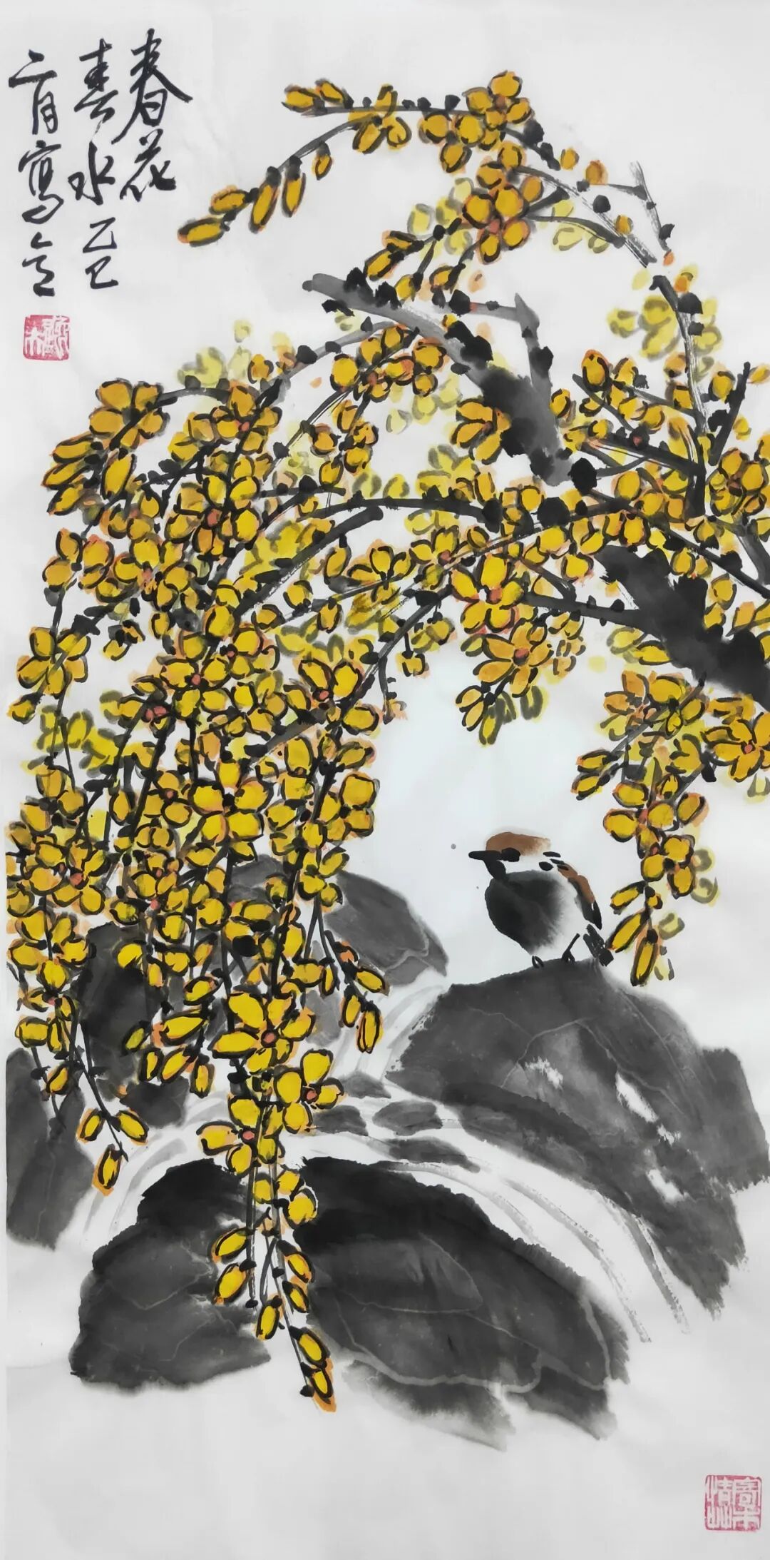 逸夫先生花鸟画作品质朴自然,浑厚清纯,领悟造化,参以己意,遵从法度,摒弃浮华,妙造自然,生机勃勃,虽为小品,赏心悦目!