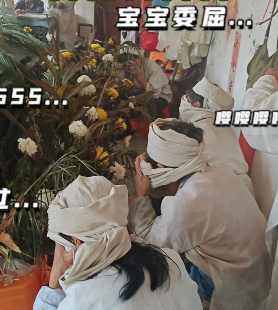 昨天中午十点整,远处的亲戚朋友都陆续前来看最后一眼老人,老大崽青年时期是去别处上门,当了上门女婿,听闻老父亲年老体衰不幸离去,心里十分伤心,他披麻戴孝在来到亡父棂前跪起,一边烧香一边痛哭流涕: