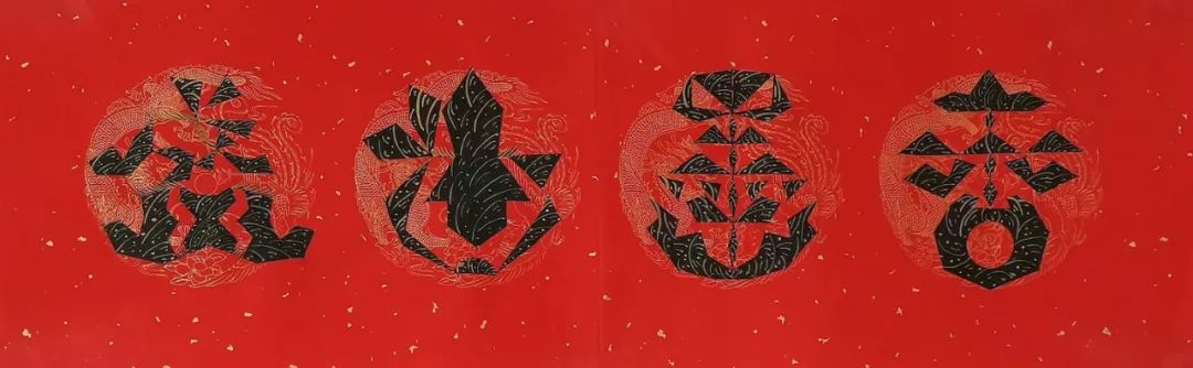 她的笔墨革新绝非寻常,而是以哲思为骨、信仰为魂的艺术觉醒。佛经偈语与道家经典在其笔下化作跃动的符号,四屏中堂宛如灵符,字中有画、画中藏谶,既承袭甲骨文的象形基因,又注入当代人对吉祥寓意的精神渴求。藏家悬其墨宝于厅堂,竟觉屋内气流和畅,心绪渐宁,这正是其人宇合一理念的玄妙再现,意象作品通过视觉共振激活人体能量场,让书法超越赏玩,成为调和命理、滋养身心的文化法器。