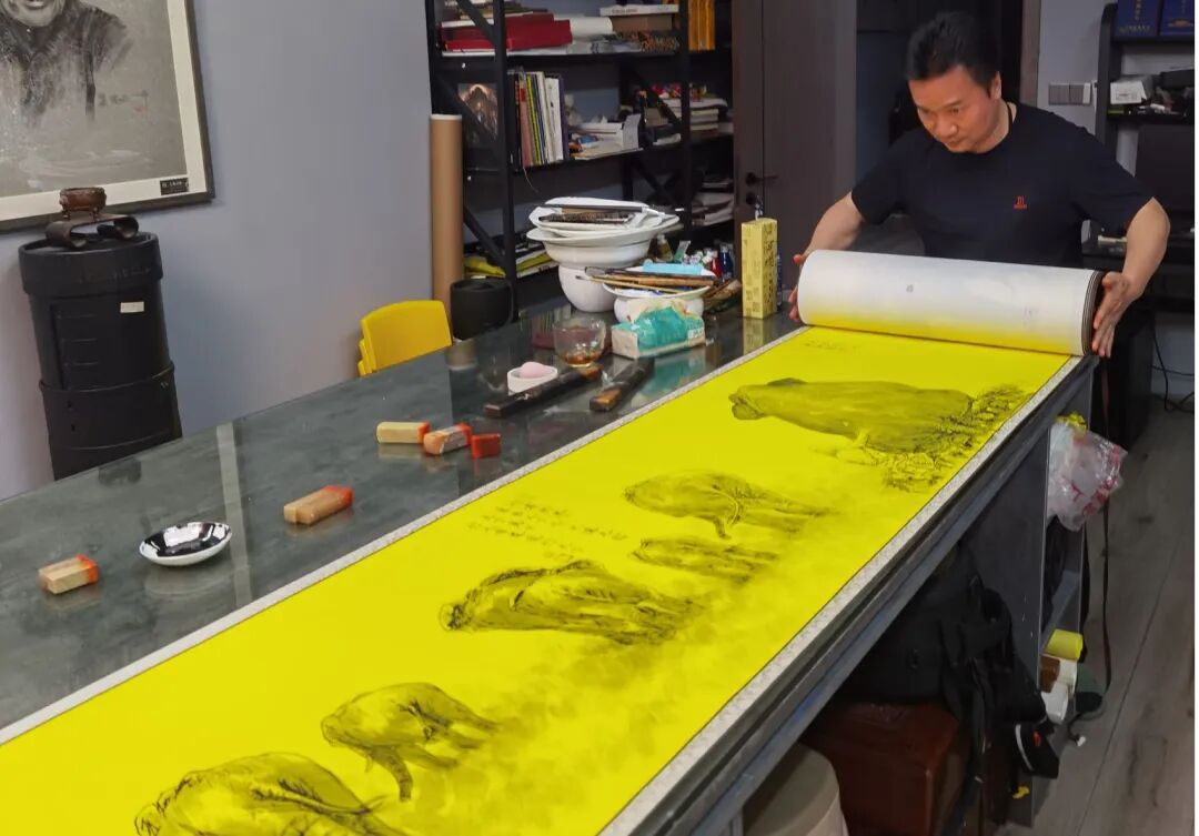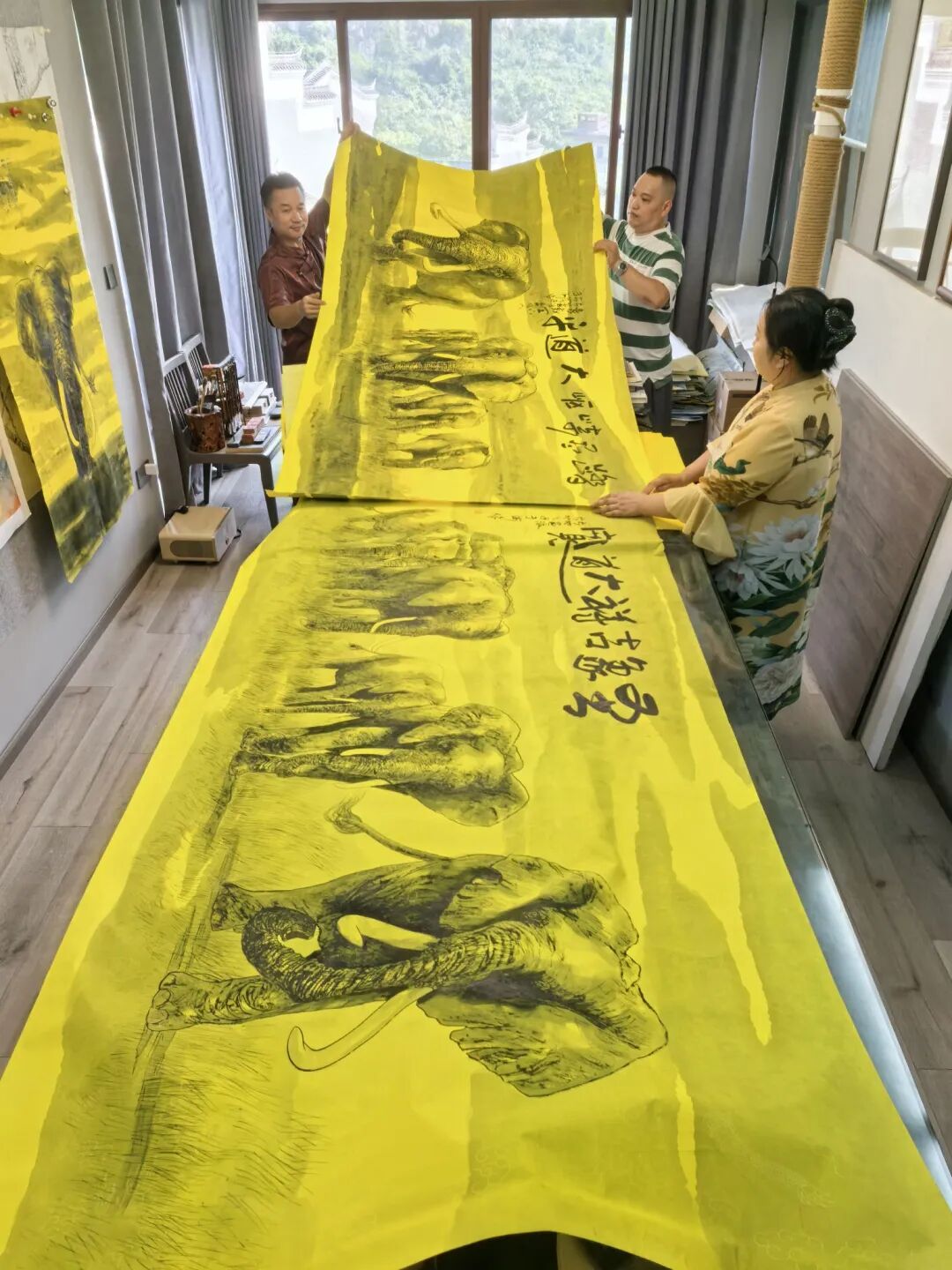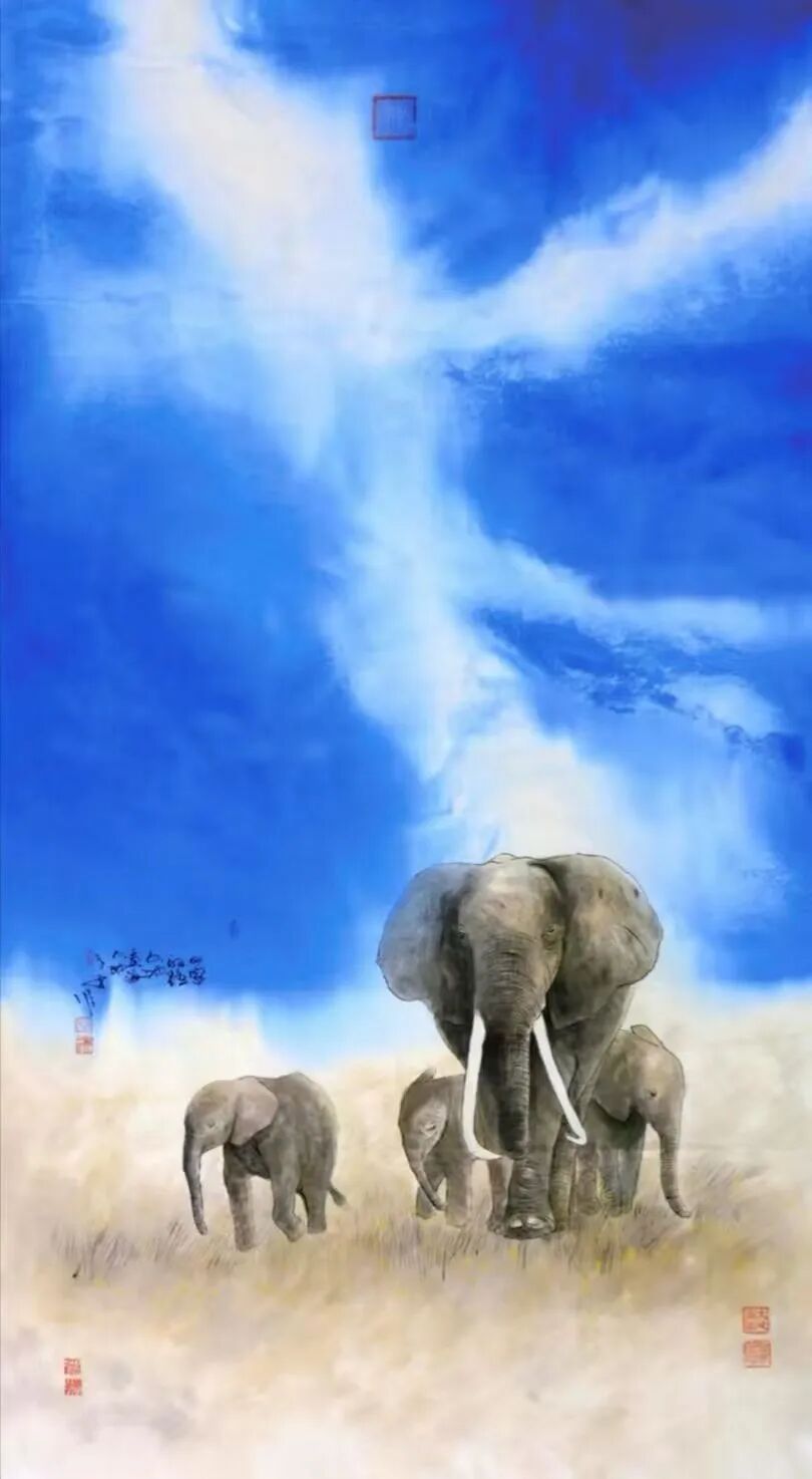 - 2021年,以帝王黄大象为题材的《象道广阔》被国家博物馆收藏,让东方“象道”智慧扎根国内艺术殿堂,迈出“以艺弘道”的第一步;(大象之“广”,恰应《道德经》“大象无形”,以有形之画,传无形之道。)