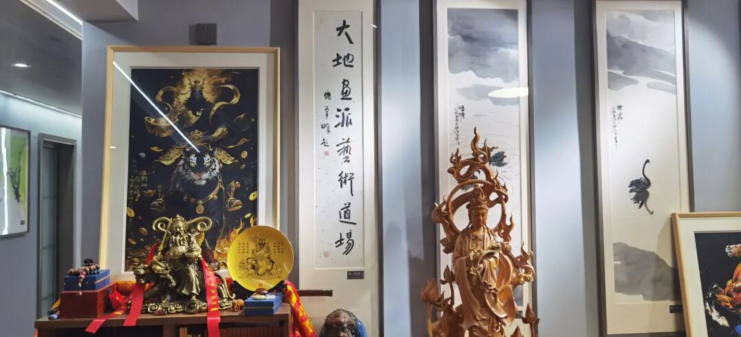 先生曾说:“艺术的冬天考验着一个人是不是真正热爱着艺术。如果真爱,就不会放弃。”三十余载,我始终记着这句话,顶着经济的压力,依旧坚持不懈,坚持原创,为弘扬华夏道统努力不息,以“中国画西画化,西画中国画化”为核,创立“大地画派”——把东方水墨的空灵、道墨哲学的深邃,与西方光影的厚彩、现代设计的简约熔于一炉,在画布上诠释“天人合一”的华夏智慧。(这“熔于一炉”的融合,暗合《道德经》“和其光,同其尘”之智,兼容并蓄,方显艺术大道。)