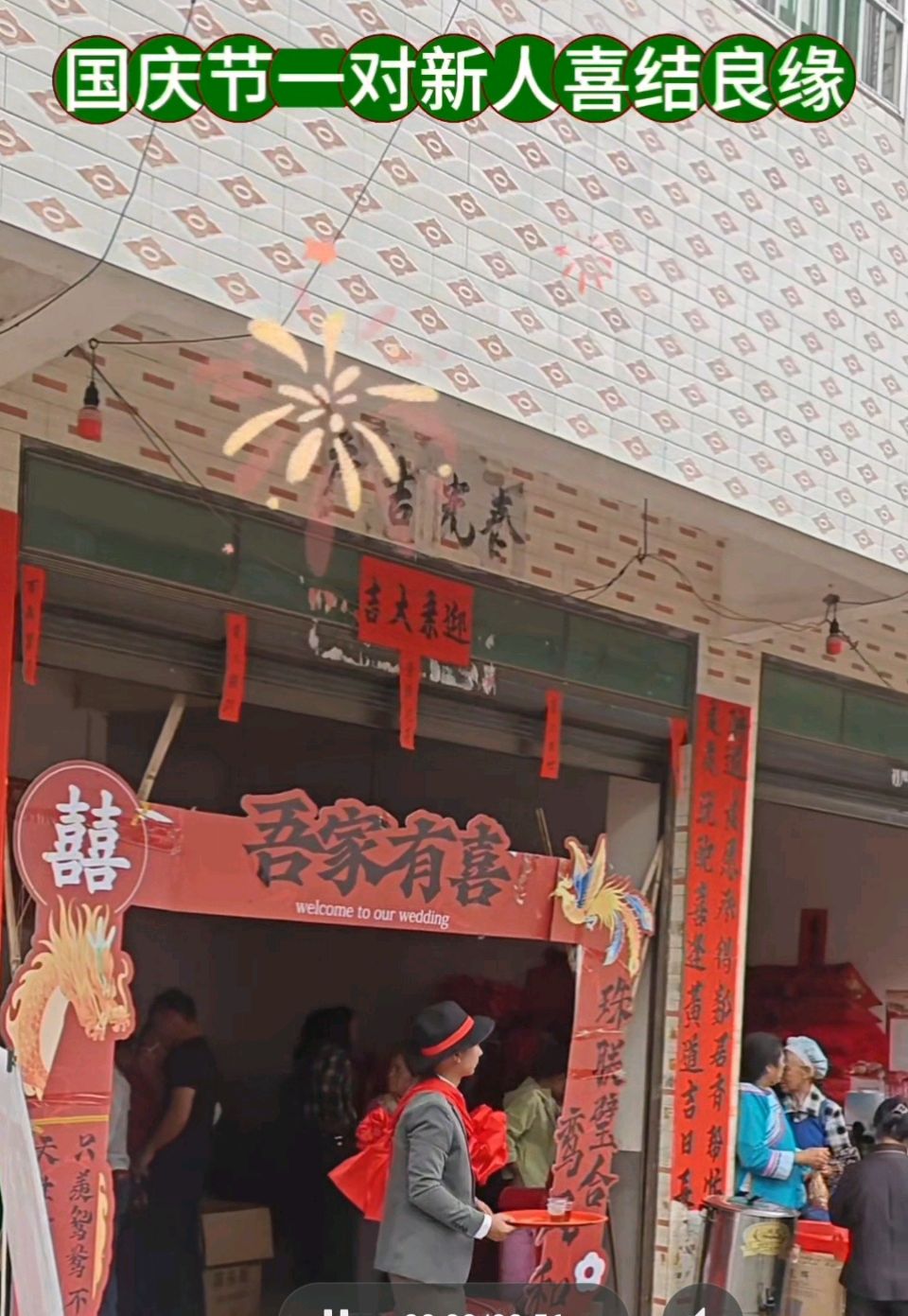 国庆节,在天文小镇一个边远的村寨里边,那里的空气弥漫着喜悦,一对新人在这充满幸福与收获的节日中喜结良缘,为宁静的乡村增添了一抹绚丽的色彩,不禁让人乐开怀。