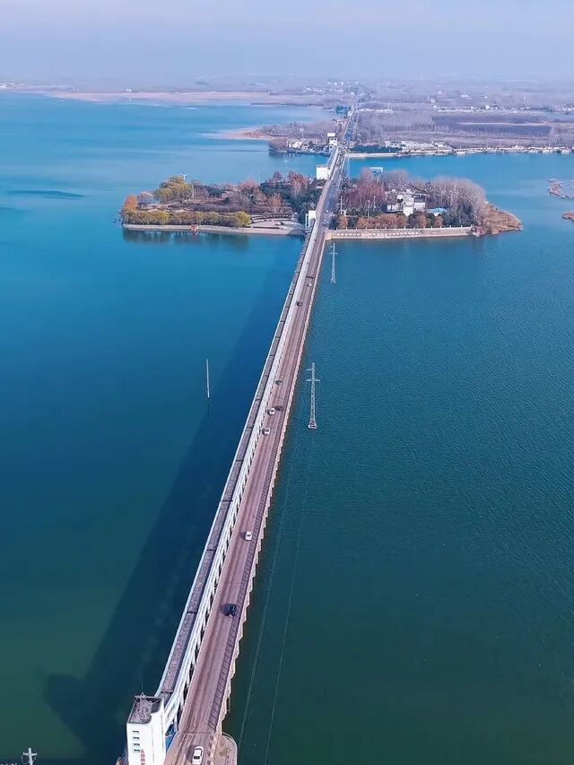 站在微山湖二级坝顶远眺,7360米的坝体如青色巨龙横卧昭阳湖中段,312孔闸门似巨龙肋骨向天际延伸,将南四湖清晰分隔为上下两级水域。这座横跨鲁苏边界的水利枢纽,既是抵御水患的钢铁屏障,更是镌刻着奋斗记忆的时代丰碑。