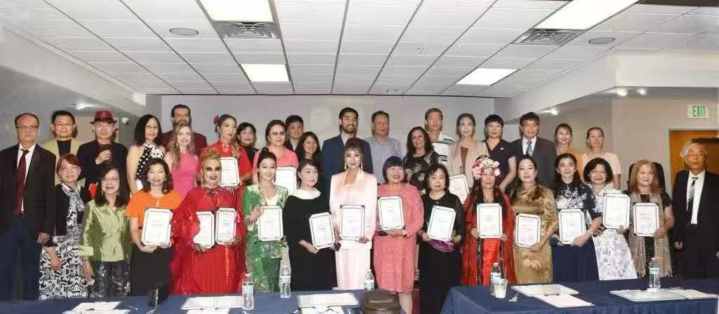 美国国会众议员议员赵美心议员助理、加州众议员方树强助理、丁言喻前市长、市长伍立伦博士助理 ArthurWu,Alejandra Avila市长、南加州华人社团联合会主席张勇、荣誉主席林德宪、冰人院长、江风年理事长、刘荣文教授、齐大辉教授、孙伟会长、赵林会长、李艺菲会长、段金萍会长、叶冬女士、吴雅明会长、彭南林副会长、于点院长、孙雨婷院长、Richard Wei、魏进发先生、何盈老师、任新荣导演、蓝菁部长、蓬丹女士、Harry宋主席,到场的嘉宾还有奉商总会会长William翟,副会长、老東北大飯店 董事长郑伟,秘书长王吉明,理事长Lucy朱等,以及洛杉矶各界嘉宾、艺术家200余人参加了此次颁奖典礼。