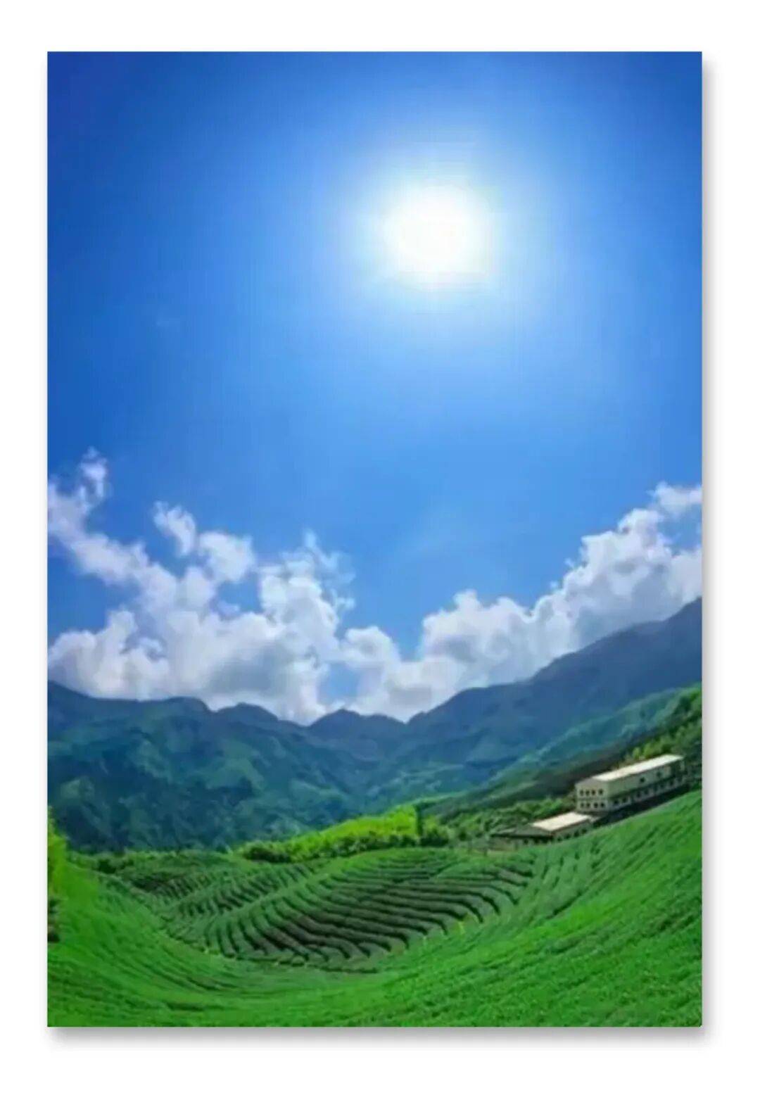 南北山川呈碧绿,江河上下映蓝天。