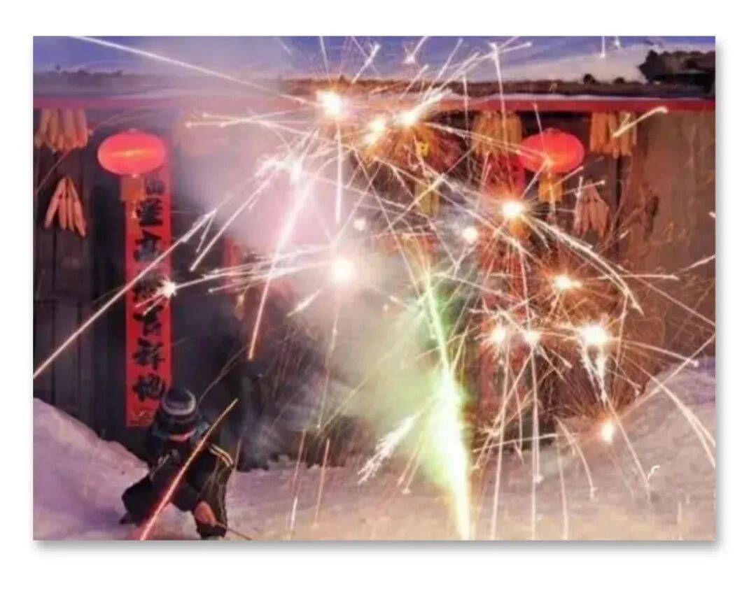 礼花鞭炮响,灯绣锦联明。