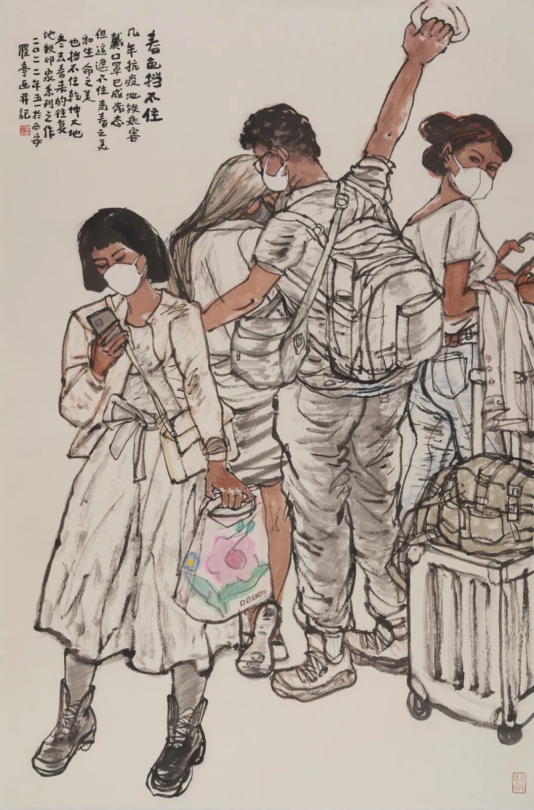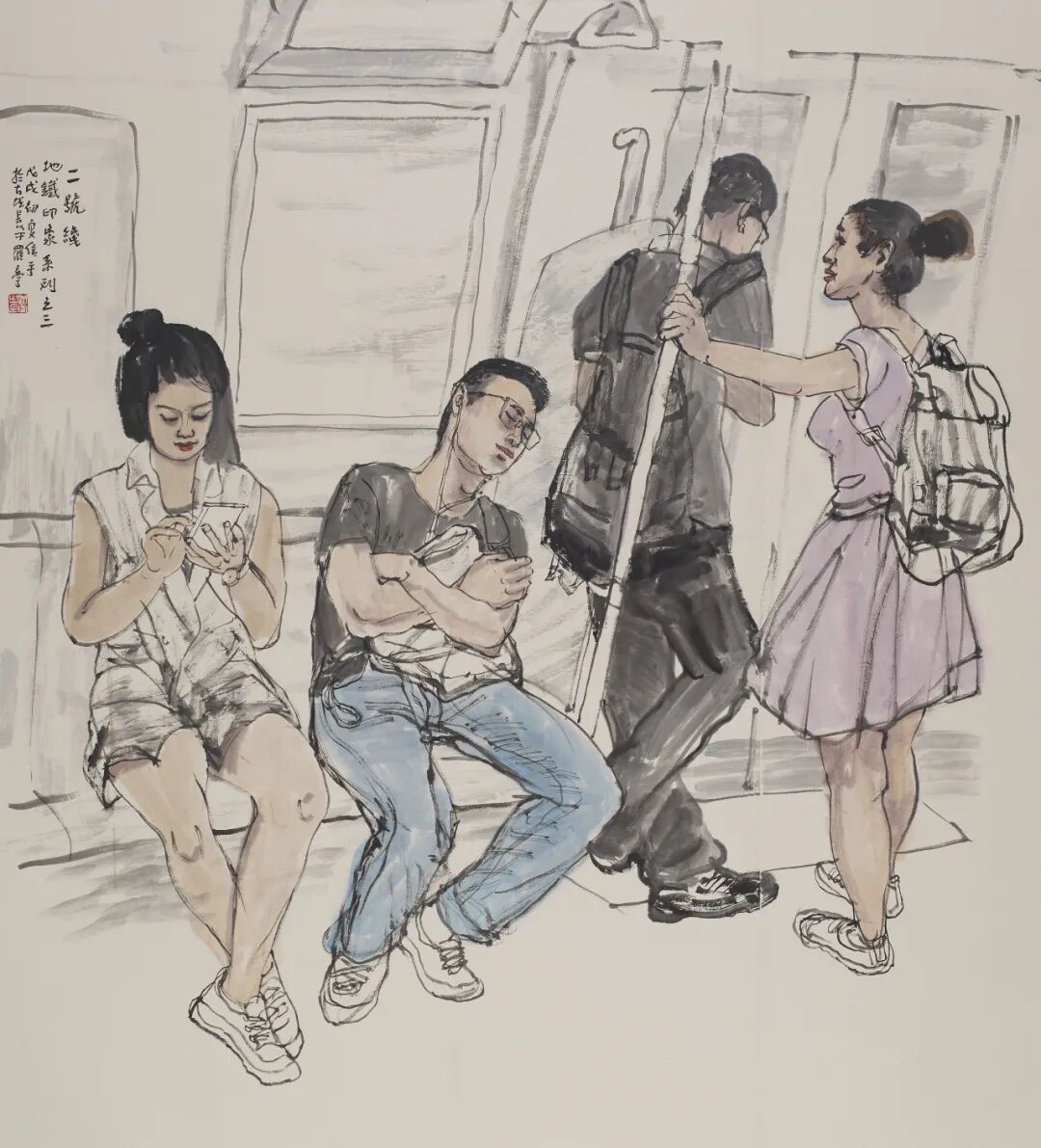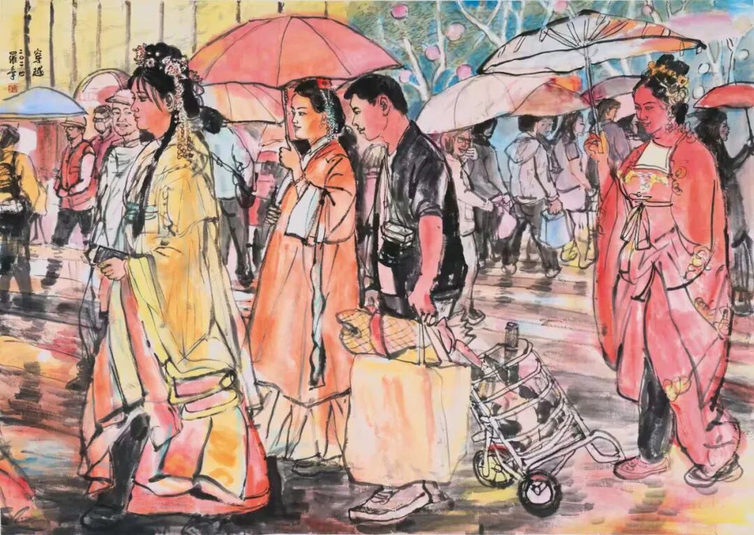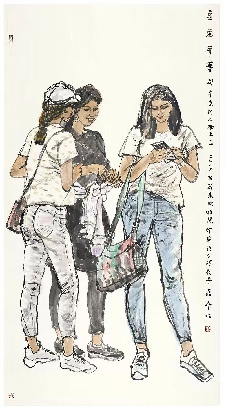 在我的学生中,罗宁与我相识甚早,转眼间已跨越了45个春秋。无论是初次在西安晚报的美编室相见,还是在庙后街文化站美术训练班的日子,罗宁对绘画的热爱,尤其是对速写、插图、连环画的痴迷,始终历历在目。他的数十幅速写作品,正是我为其在西安晚报编发,并引起了广泛关注。后来,我创办西安中国画院离职报社,罗宁却因插画技艺精湛,踏入《文化艺术报》,从美编逐步晋升至总编辑,再后来又被委以陕西国画院书记和副院长的重任。10年后,他担任陕西省美术博物馆馆长,继而成为省美协主席团副主席。在这段时间里,由于工作关系,我们师生之间的交流颇为频繁,他随我一同出访美国、德国等国家,开展交流展览活动。那时,我便注意到他对国外美术馆的浓厚兴趣,将美术馆视为一份重要的事业来经营。罗宁始终秉持大局观念,在美术领域的重要窗口单位,为推举青年艺术家,推动陕西美术事业的发展做出了杰出贡献。他排除万难,独立策划的“高原高原——中国西部美术展”已连续举办七届,赢得了国内外的广泛赞誉。数次在深夜的开幕颁奖活动结束后,目送罗宁挥手送我上车,我为他的这份情怀深深感动……之后,我们共同致力于陕西省中国画学会的创建和学术活动的开展。罗宁广阔的视野、全面扎实的知识储备以及多年积累的组织工作经验,使他成为学会事业发展中不可或缺的核心力量。尽管罗宁在体制内的职务屡有变动,担任陕西省重要美术机构的领导,行政事务繁忙,但他始终秉持初心,即便在艰辛之中,亦不忘抽取时间投身于人物画的创作。他的作品频见于各类展览及媒体,经年累月,已成为陕西画坛一位颇具实力和影响力的代表性画家。中国文联文艺评论工程曾将罗宁的创作历程作为研究对象,以“新时期中国画语言风格探索”为题进行了专题探讨,并出版了《罗宁学术研究》文集以及罗宁中国画作品集。我一直认为罗宁的艺术之路尚处于盛年,他的画作若能进一步沉淀、磨砺,定能举办一次颇具影响力的展览,这是完全有希望的。然而,意想不到的是,罗宁今年已经67岁,距离他在南京、深圳的展览已有十年之久。那时他本想在西安同期举办个展,却因故未能如愿,仅为了配合中国文联文艺评论工程的个案研究,举办了一个小规模的“海上丝绸之路——罗宁惠安女写生展”。如今,伴随着新著《环游世界美术馆——欧洲行》的问世,罗宁重返这片曾经挥洒汗水与梦想的土地,举办一场回顾展,实至名归,顺理成章。纯色挡不住——地铁印象系列之作 180×130cm对于一位艺术机构的管理者来说,创作出如此众多优秀作品实属不易,其背后付出的辛劳与努力不言而喻。罗宁在退休后的几年里依然笔耕不辍,坚持创作,其新作品更是别具一格。特别是近年来创作的地铁系列画作,展现出他在中国画表现都市生活这一领域的深入思考与可贵尝试。罗宁的中国人物画独树一帜,其作品风格鲜明,辨识度极高,在继承后长安画派传统的陕西画坛,罗宁无疑开辟了一条别开生面的探索之路。他的画作并非一味追求长安画派的浑厚苍茫、苦涩老辣,而是展现出一种别致的审美:灵动而轻松、阳光且喜悦、唯美而健康,率真而亲切。这与罗宁的生活态度如出一辙,真挚纯粹,性格使然。罗宁的作品在题材选择上与众多陕西本土画家有所区别,当众人趋之若鹜地描绘陕北人物、关中农民时,罗宁却将目光投向了新疆维族、云南傣族、甘南藏族等少数民族,以及他多次写生的闽南惠安女;在许多人热衷于异地风光人物时,罗宁却聚焦于他所生活的都市,6年如一日地乘坐地铁,创作了百余本、近万幅的速写,进而创作出近20幅地铁人物画作,其中不乏丈二匹大幅作品。这充分体现了一个画家独立思考、独辟蹊径、坚韧不拔的优秀品质。绘画题材的选择是画家个人偏好,无分高下,关键在于画家如何表达对所爱对象的情感。罗宁的人物画创作从民族情结到都市风采的转变,始终贯穿着追求浓郁生活气息的主线,在平凡的日常场景和人物形象中发掘美、呈现美,并从速写中提炼出独具特色的线条语言。在所有题材和表现形式中,都能感受到罗宁年轻阳光的心态,对民族人物的深厚情感,以及对现代都市的热爱。在长期的探索实践中,罗宁的人物画创作能力不断提高,无论是构图严谨的大幅主题创作,还是情趣盎然、笔墨灵动的小品,都彰显着他对现代人物画的探索与追求,如《惠风》《明天会更好》《生命》《嘎洒早市》等作品,均在全国重要美展中入选。罗宁作为受过西方造型训练的中国画家,在传承与创新、造像与笔墨等方面曾面临不少困惑,但他凭借对美术史论的深入研究,成功化解了实践中的难题。他的数件大幅作品,经过多次尝试,展现了他对中国人物画表现形式的多元探索,令人欣喜。在绘画创作取得成就的同时,退休后的罗宁还致力于美术文化的推广与传播,不仅撰写了介绍欧洲优秀艺术博物馆的著作,还制作了200余期短视频,普及艺术文化。这份努力是巨大的,精神令人感动。联系他近几年都市题材的新作,正展现了这个时代对艺术家的呼唤:与时代同步。画画是一生的事业,对于从事中国画的画家而言,在岁月的洗礼中,生命意识的觉醒至关重要。我相信罗宁会深刻领悟这一点,在追求艺术道的同时,技艺问题也将迎刃而解。我与罗宁等几位学生经常探讨这些问题,无论在国内还是国外,无