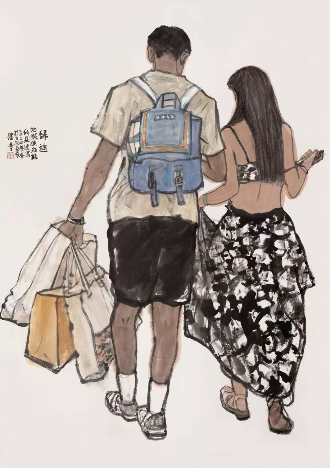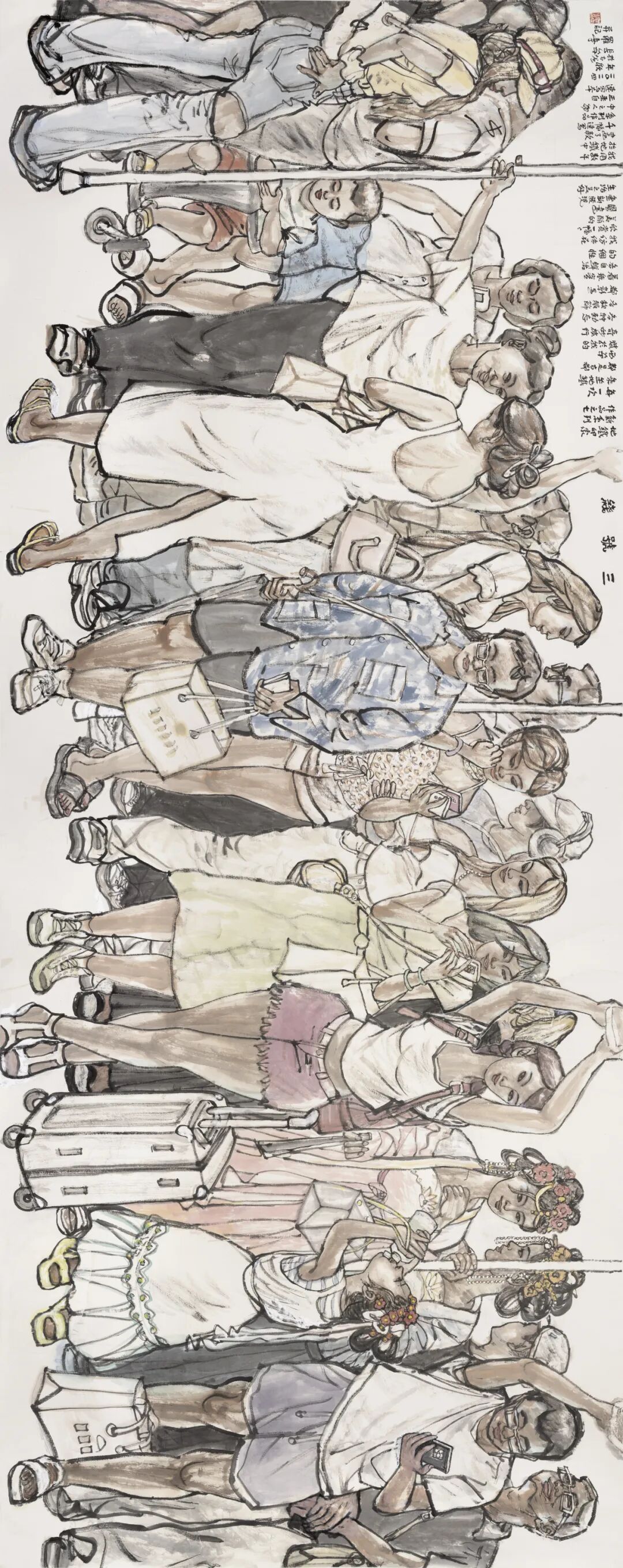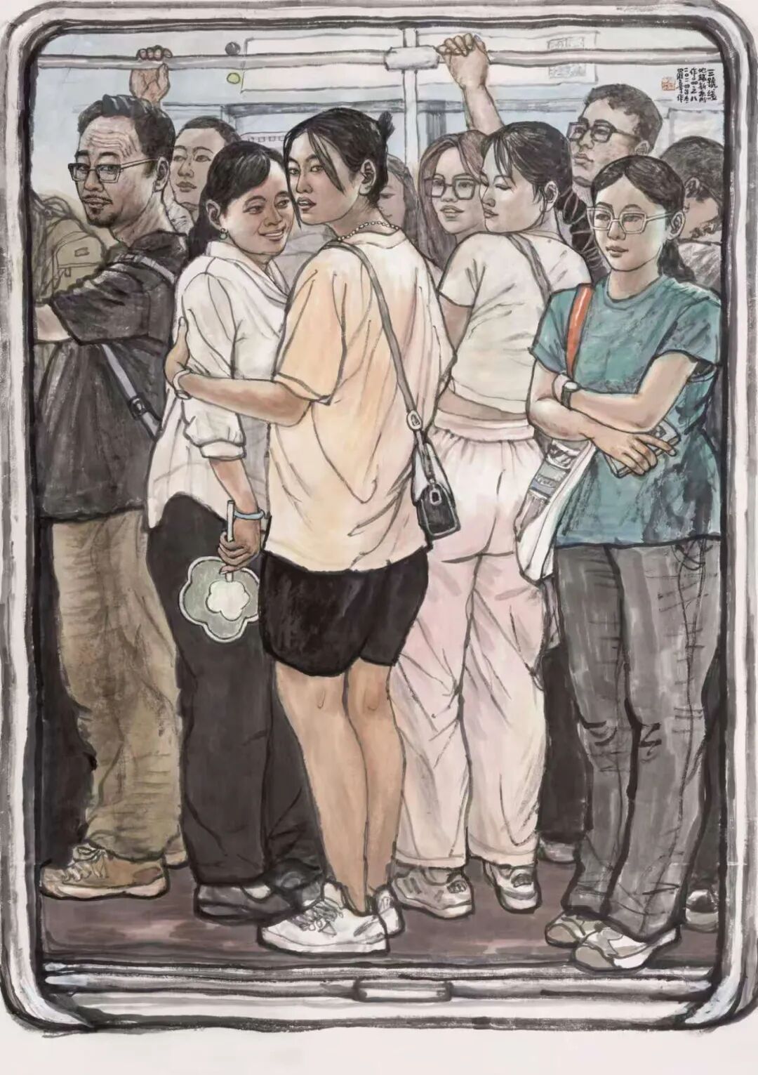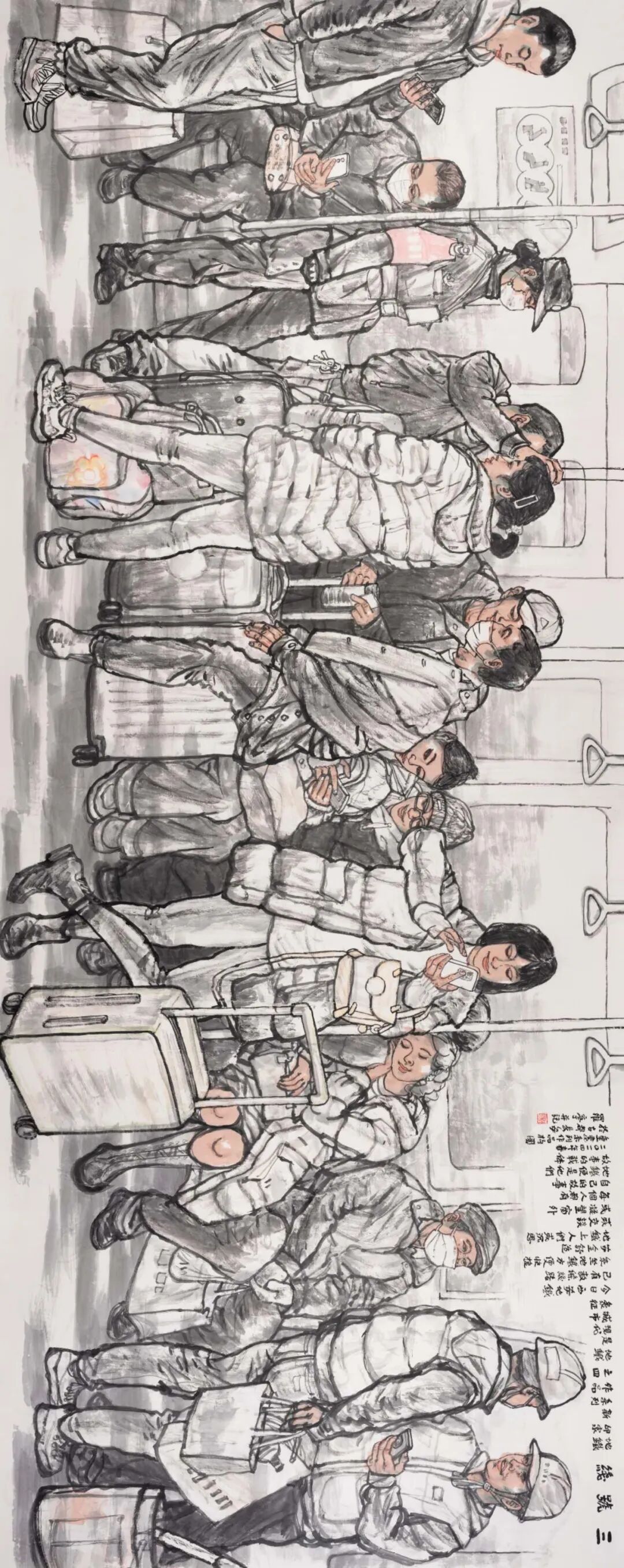 在我的学生中,罗宁与我相识甚早,转眼间已跨越了45个春秋。无论是初次在西安晚报的美编室相见,还是在庙后街文化站美术训练班的日子,罗宁对绘画的热爱,尤其是对速写、插图、连环画的痴迷,始终历历在目。他的数十幅速写作品,正是我为其在西安晚报编发,并引起了广泛关注。后来,我创办西安中国画院离职报社,罗宁却因插画技艺精湛,踏入《文化艺术报》,从美编逐步晋升至总编辑,再后来又被委以陕西国画院书记和副院长的重任。10年后,他担任陕西省美术博物馆馆长,继而成为省美协主席团副主席。在这段时间里,由于工作关系,我们师生之间的交流颇为频繁,他随我一同出访美国、德国等国家,开展交流展览活动。那时,我便注意到他对国外美术馆的浓厚兴趣,将美术馆视为一份重要的事业来经营。罗宁始终秉持大局观念,在美术领域的重要窗口单位,为推举青年艺术家,推动陕西美术事业的发展做出了杰出贡献。他排除万难,独立策划的“高原高原——中国西部美术展”已连续举办七届,赢得了国内外的广泛赞誉。数次在深夜的开幕颁奖活动结束后,目送罗宁挥手送我上车,我为他的这份情怀深深感动……之后,我们共同致力于陕西省中国画学会的创建和学术活动的开展。罗宁广阔的视野、全面扎实的知识储备以及多年积累的组织工作经验,使他成为学会事业发展中不可或缺的核心力量。尽管罗宁在体制内的职务屡有变动,担任陕西省重要美术机构的领导,行政事务繁忙,但他始终秉持初心,即便在艰辛之中,亦不忘抽取时间投身于人物画的创作。他的作品频见于各类展览及媒体,经年累月,已成为陕西画坛一位颇具实力和影响力的代表性画家。中国文联文艺评论工程曾将罗宁的创作历程作为研究对象,以“新时期中国画语言风格探索”为题进行了专题探讨,并出版了《罗宁学术研究》文集以及罗宁中国画作品集。我一直认为罗宁的艺术之路尚处于盛年,他的画作若能进一步沉淀、磨砺,定能举办一次颇具影响力的展览,这是完全有希望的。然而,意想不到的是,罗宁今年已经67岁,距离他在南京、深圳的展览已有十年之久。那时他本想在西安同期举办个展,却因故未能如愿,仅为了配合中国文联文艺评论工程的个案研究,举办了一个小规模的“海上丝绸之路——罗宁惠安女写生展”。如今,伴随着新著《环游世界美术馆——欧洲行》的问世,罗宁重返这片曾经挥洒汗水与梦想的土地,举办一场回顾展,实至名归,顺理成章。纯色挡不住——地铁印象系列之作 180×130cm对于一位艺术机构的管理者来说,创作出如此众多优秀作品实属不易,其背后付出的辛劳与努力不言而喻。罗宁在退休后的几年里依然笔耕不辍,坚持创作,其新作品更是别具一格。特别是近年来创作的地铁系列画作,展现出他在中国画表现都市生活这一领域的深入思考与可贵尝试。罗宁的中国人物画独树一帜,其作品风格鲜明,辨识度极高,在继承后长安画派传统的陕西画坛,罗宁无疑开辟了一条别开生面的探索之路。他的画作并非一味追求长安画派的浑厚苍茫、苦涩老辣,而是展现出一种别致的审美:灵动而轻松、阳光且喜悦、唯美而健康,率真而亲切。这与罗宁的生活态度如出一辙,真挚纯粹,性格使然。罗宁的作品在题材选择上与众多陕西本土画家有所区别,当众人趋之若鹜地描绘陕北人物、关中农民时,罗宁却将目光投向了新疆维族、云南傣族、甘南藏族等少数民族,以及他多次写生的闽南惠安女;在许多人热衷于异地风光人物时,罗宁却聚焦于他所生活的都市,6年如一日地乘坐地铁,创作了百余本、近万幅的速写,进而创作出近20幅地铁人物画作,其中不乏丈二匹大幅作品。这充分体现了一个画家独立思考、独辟蹊径、坚韧不拔的优秀品质。绘画题材的选择是画家个人偏好,无分高下,关键在于画家如何表达对所爱对象的情感。罗宁的人物画创作从民族情结到都市风采的转变,始终贯穿着追求浓郁生活气息的主线,在平凡的日常场景和人物形象中发掘美、呈现美,并从速写中提炼出独具特色的线条语言。在所有题材和表现形式中,都能感受到罗宁年轻阳光的心态,对民族人物的深厚情感,以及对现代都市的热爱。在长期的探索实践中,罗宁的人物画创作能力不断提高,无论是构图严谨的大幅主题创作,还是情趣盎然、笔墨灵动的小品,都彰显着他对现代人物画的探索与追求,如《惠风》《明天会更好》《生命》《嘎洒早市》等作品,均在全国重要美展中入选。罗宁作为受过西方造型训练的中国画家,在传承与创新、造像与笔墨等方面曾面临不少困惑,但他凭借对美术史论的深入研究,成功化解了实践中的难题。他的数件大幅作品,经过多次尝试,展现了他对中国人物画表现形式的多元探索,令人欣喜。在绘画创作取得成就的同时,退休后的罗宁还致力于美术文化的推广与传播,不仅撰写了介绍欧洲优秀艺术博物馆的著作,还制作了200余期短视频,普及艺术文化。这份努力是巨大的,精神令人感动。联系他近几年都市题材的新作,正展现了这个时代对艺术家的呼唤:与时代同步。画画是一生的事业,对于从事中国画的画家而言,在岁月的洗礼中,生命意识的觉醒至关重要。我相信罗宁会深刻领悟这一点,在追求艺术道的同时,技艺问题也将迎刃而解。我与罗宁等几位学生经常探讨这些问题,无论在国内还是国外,无