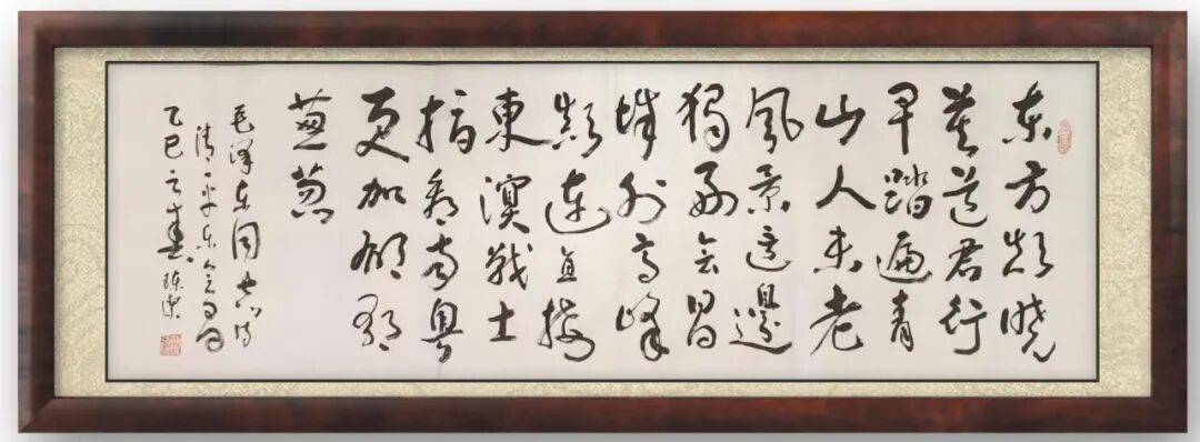 先生作书,从不困守旧规,亦不盲目逐新,而是在 “守” 与 “破” 间寻得精妙平衡。其笔下线条,藏着 “笼天地于形内,挫万物于笔端” 的古典意趣 —— 横如千里阵云,竖似万岁枯藤,撇若犀象奔走,捺同剑刃出鞘,每一笔都带着传统书法 “兼文墨” 的深厚修养,是对钟鼎文的沉雄、晋人帖的飘逸、唐人碑的严谨的悄然承继。他又不囿于古人窠臼,以 “弄潮儿向涛头立” 的胆识创新笔法:有时以枯墨破锋写行草,似老树虬枝映寒月,苍劲中见灵动;有时以淡墨润笔作行楷,如春雨拂青柳,温润里藏筋骨。传统与现代在横竖撇捺间碰撞交融,自成一派风骨,让人叹其对书法艺术的通透理解与大胆突破。