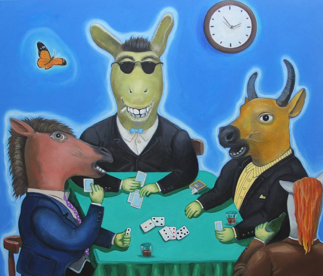 油画《牌局》