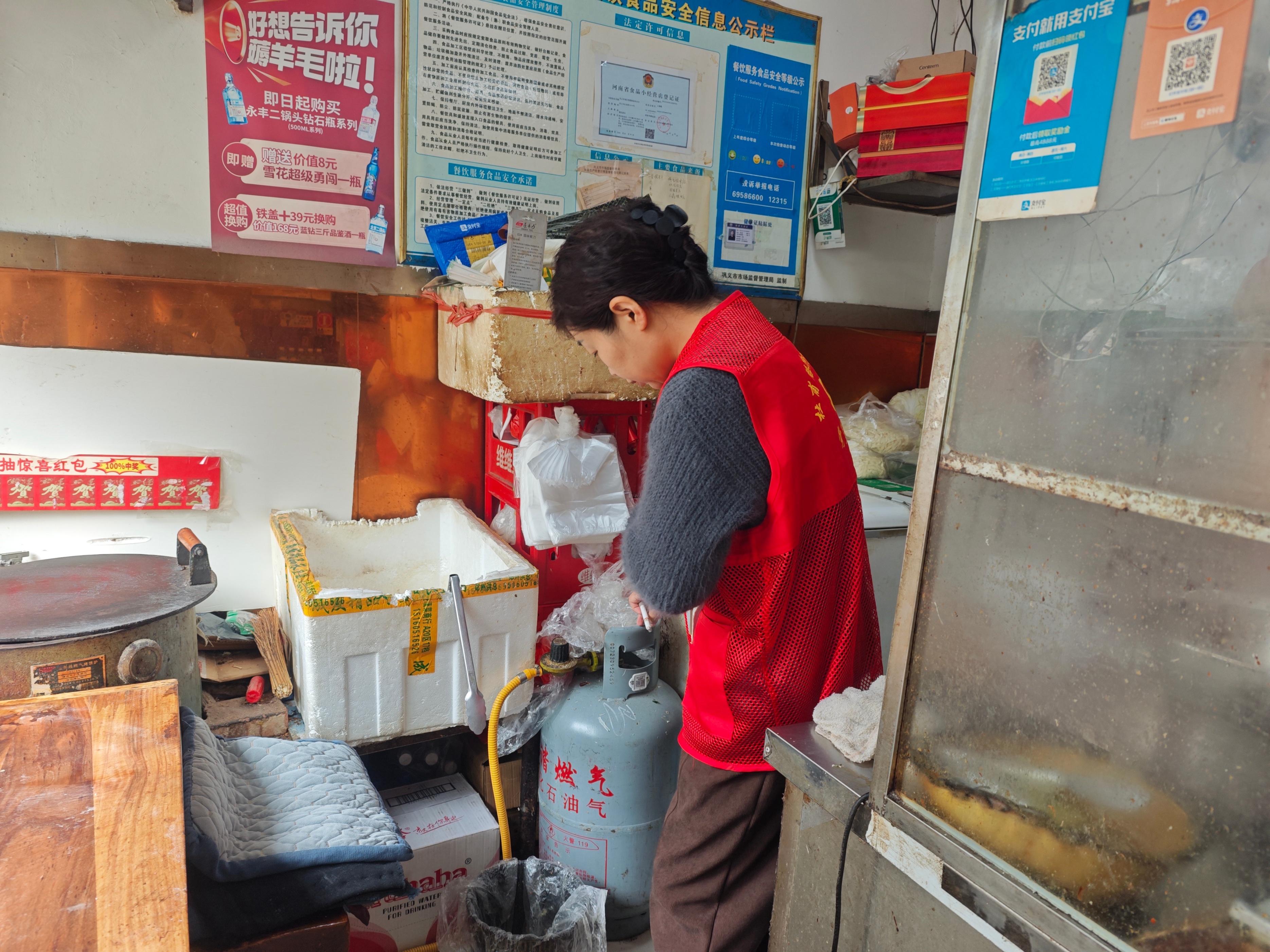 社区网格员对辖区内餐饮门店开展“地毯式”排查。重点查看燃气“三件套”(自闭阀、金属波纹管、燃气泄漏报警器)的安装和使用情况,仔细检查燃气管道是否存在老化、破损、私拉乱接,燃气器具是否合格,以及厨房通风条件是否良好等问题。针对检查中发现的问题,当场向商户负责人指出,并下发整改通知书,要求限期整改。